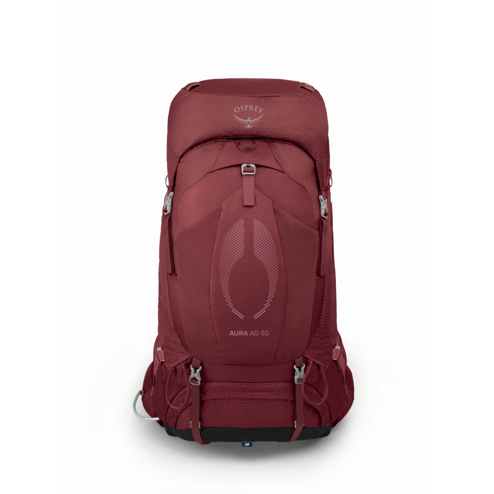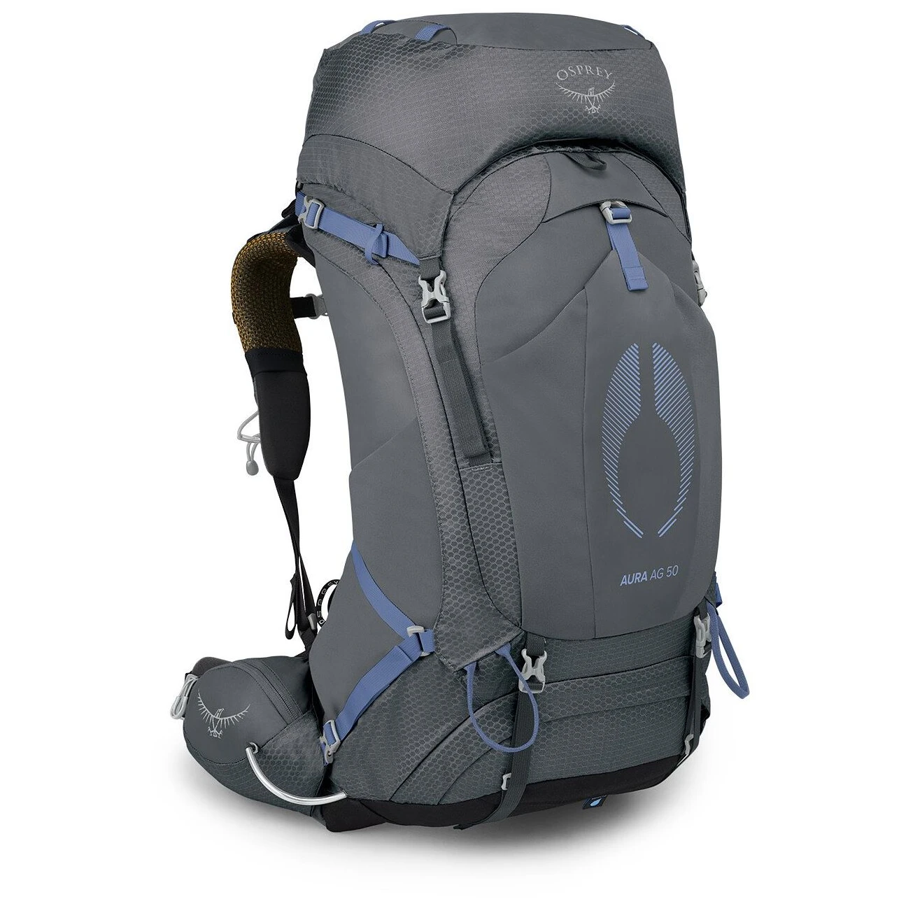 Damen-Wanderrucksack Osprey Der Aura AG 50 ist mit einem einzigartigen AntiGravity™-Rückensystem ausgestattet, das vollständig aus einem bis zum Hüftgurt reichenden, gespannten Netz besteht. Der Hüftgurt ist als erster seiner Art vollständig belüftet, was dem Nutzer auch an heißen Sommertagen oder bei anstrengenden Aufstiegen Komfort bietet. Die Rückenkonstruktion sowie die gepolsterten Schultergurte sind an die weibliche Figur angepasst.