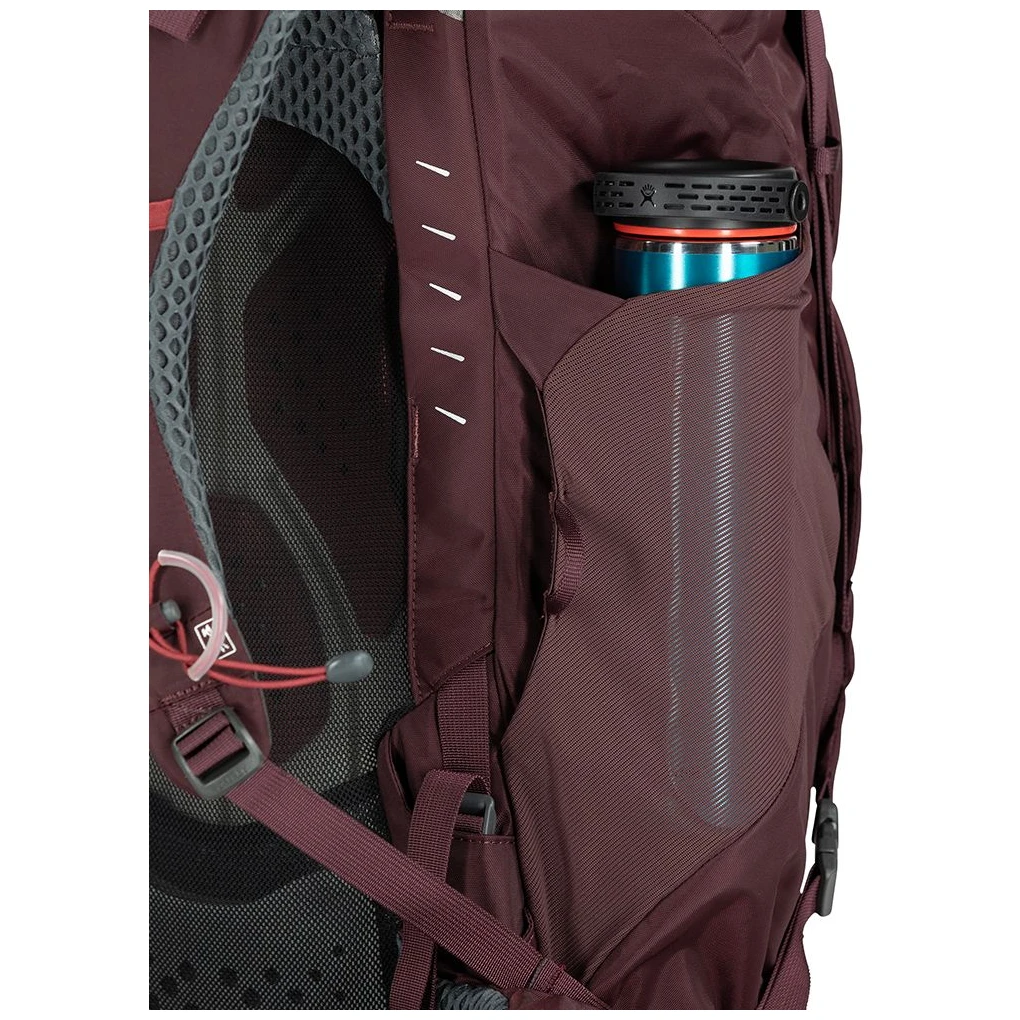 Eine Fronttasche mit Zwickeln aus elastischem Netzgewebe, ein Schlafsackfach mit Reißverschluss und schwebender Trennwand, eine Stow-on-the-Go-Halterung für Trekkingstöcke, zwei Seitentaschen aus elastischem Netzgewebe, eine schwebende obere Tasche und Hüftgurttaschen mit Reißverschluss bieten reichlich Stauraum. Sie werden das interne Reservoirfach mit Hydraclip zum einfacheren Aufhängen des Trinkrucksacks, zwei Schlaufen für Eispickel, abnehmbare Gurte für Schlafunterlagen und den U-förmigen Reißverschlusszugang zum Hauptfach zu schätzen wissen.