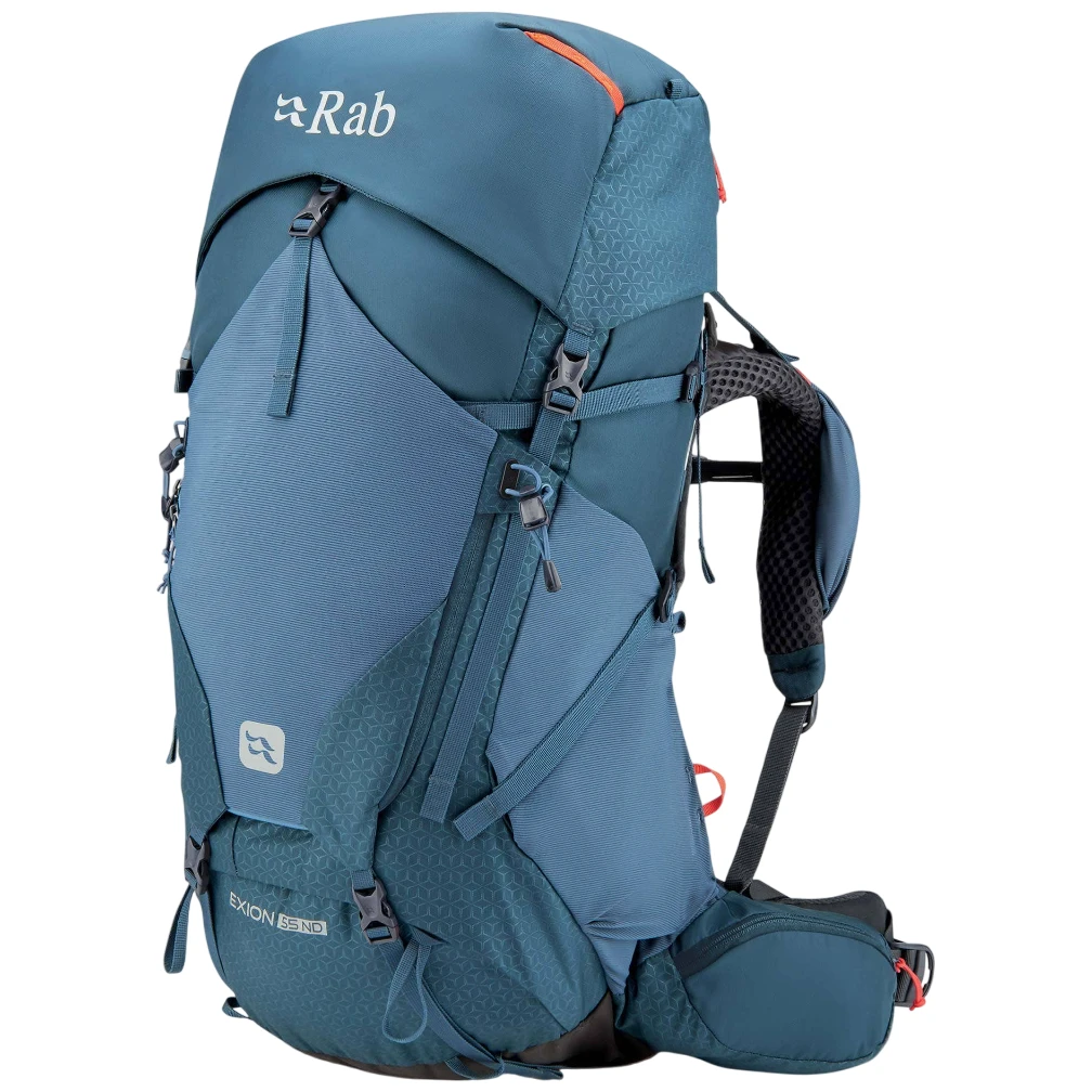 Der Damen-Rucksack Exion 55 ND der Marke Rab ist vielseitig und begleitet Sie überall hin, von anspruchsvollen Tageswanderungen zu jeder Jahreszeit bis hin zu hellen Sommernächten und Wildcamping. Natürlich bietet das stark gepolsterte, verstellbare V-TRAX™-Rückensystemjederzeit Komfort unterwegs, und die geformte Lendenpolsterung und der stützende Hüftgurt sorgen für Bequemlichkeit an langen Tagen.