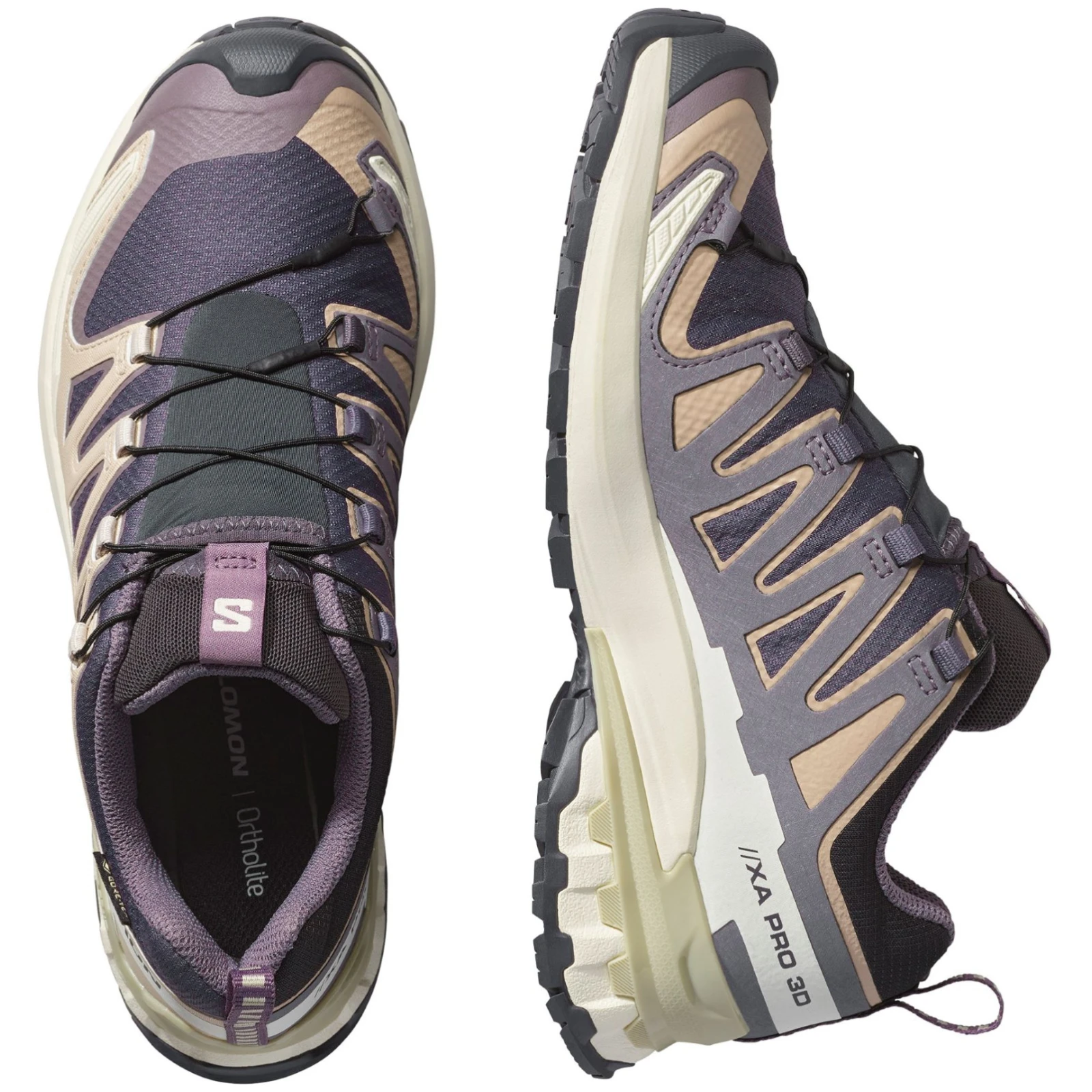 Damen-Low-Top-Schuhe Salomon Xa Pro 3D V9 GTX sind ein neues, verbessertes Modell des originalen Salomon Xa Pro 3D V8. Die Schuhe behalten alle funktionalen Eigenschaften, sind jedoch noch leichter und flexibler und zudem mit einer Gore-Tex-Membran ausgestattet. Das Modell ist eine Kombination aus Lauf- und Wanderschuh. Dies macht diese Schuhe ideal für sportliche Personen, die das Laufen und Gehen in anspruchsvollem Gelände bevorzugen.