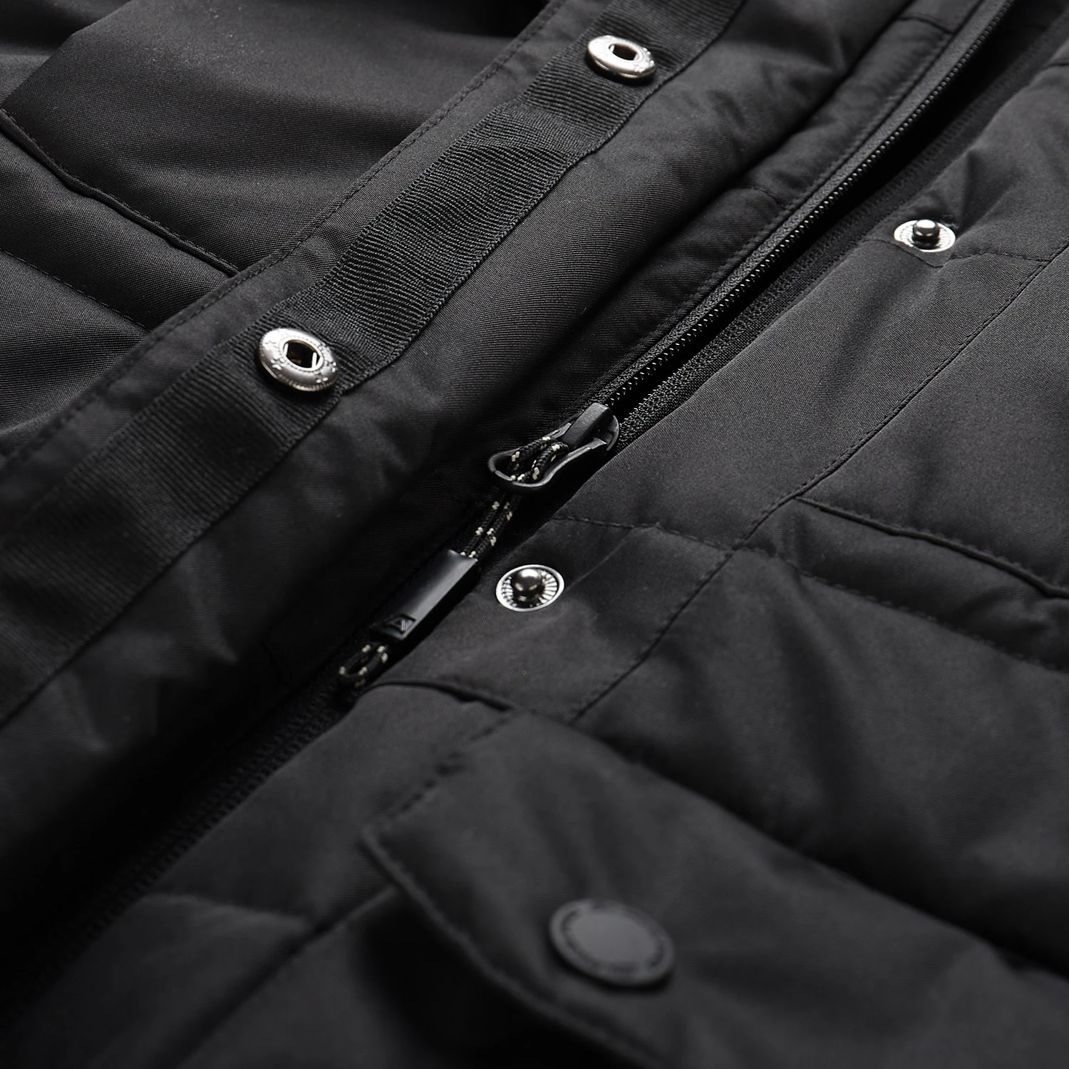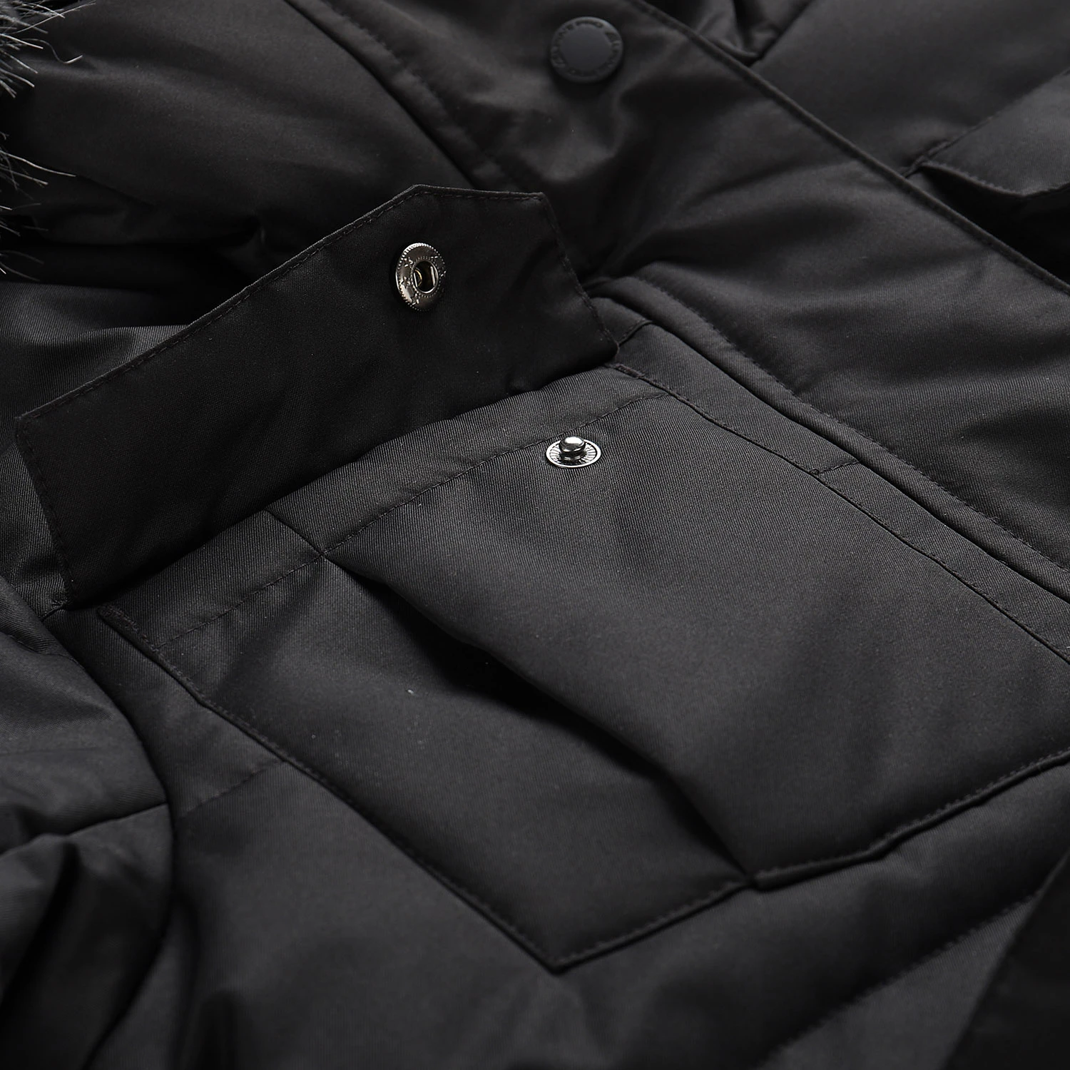 Egal ob in den Bergen oder in der Stadt, Sie werden die dicke, warme Wattierung, die verstellbare Kapuze mit schönem Kunstfell, den Kinnschutz, die Ärmel mit inneren Strickbündchen und die praktischen Taschen für alle wichtigen Dinge sicher zu schätzen wissen. Die Jacke ist gesteppt und im modernen, flauschigen Stilgefertigt, in einem bequemen, halbtaillierten Schnitt mit Ziernähten und einer abnehmbaren Kunstpelz- Kapuze. Wassersäule 3000 mm, Dampfdurchlässigkeit 3000 g/m2/24h.