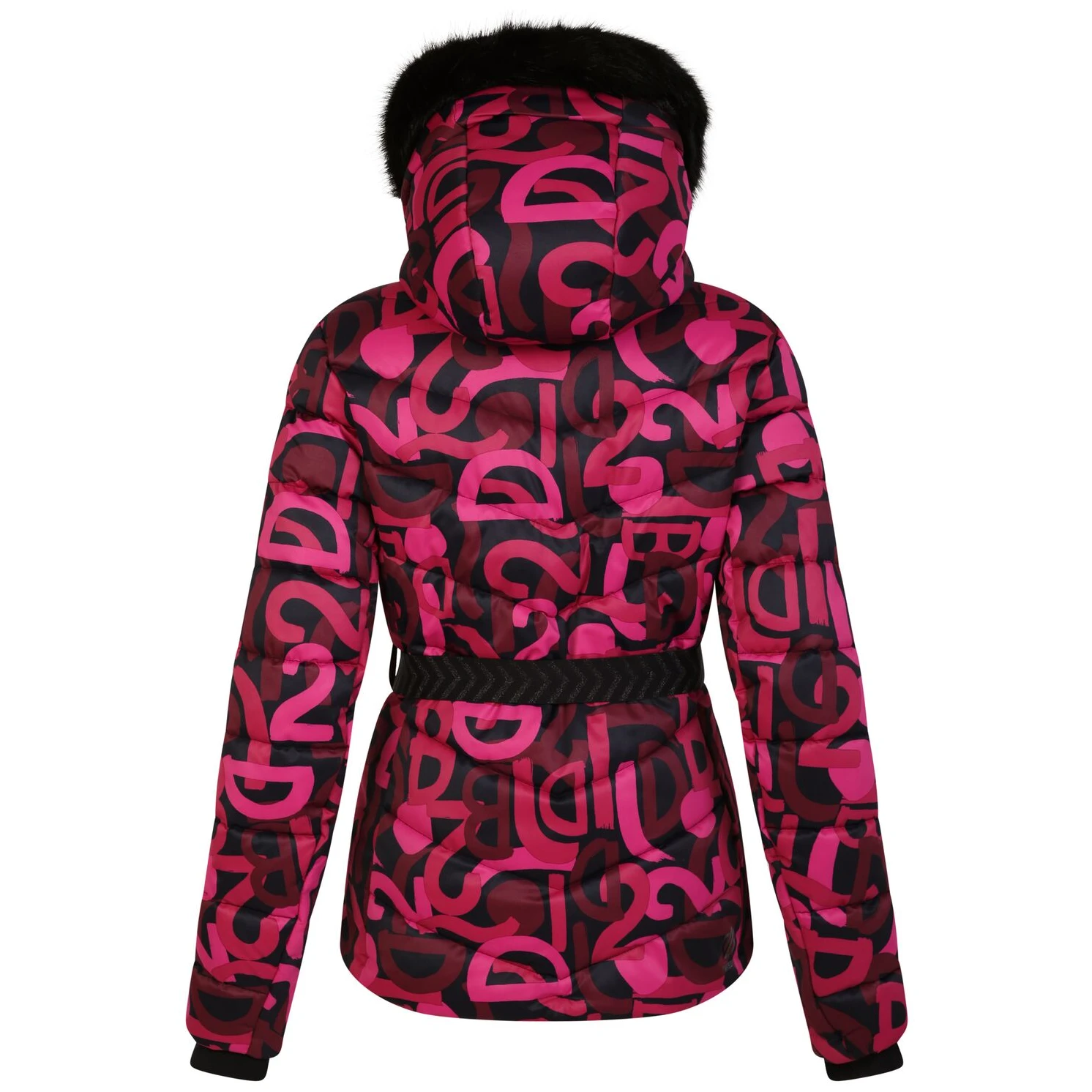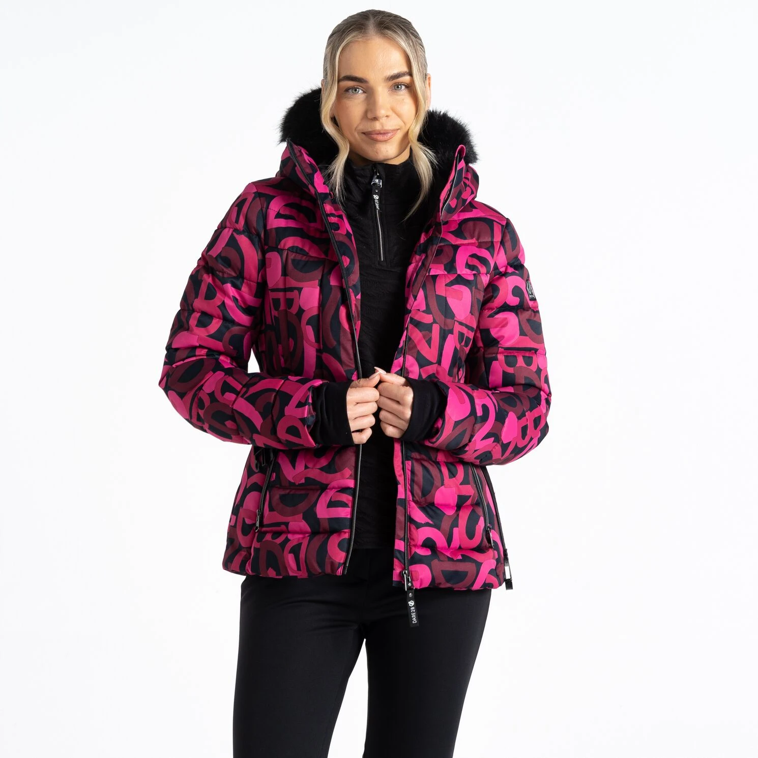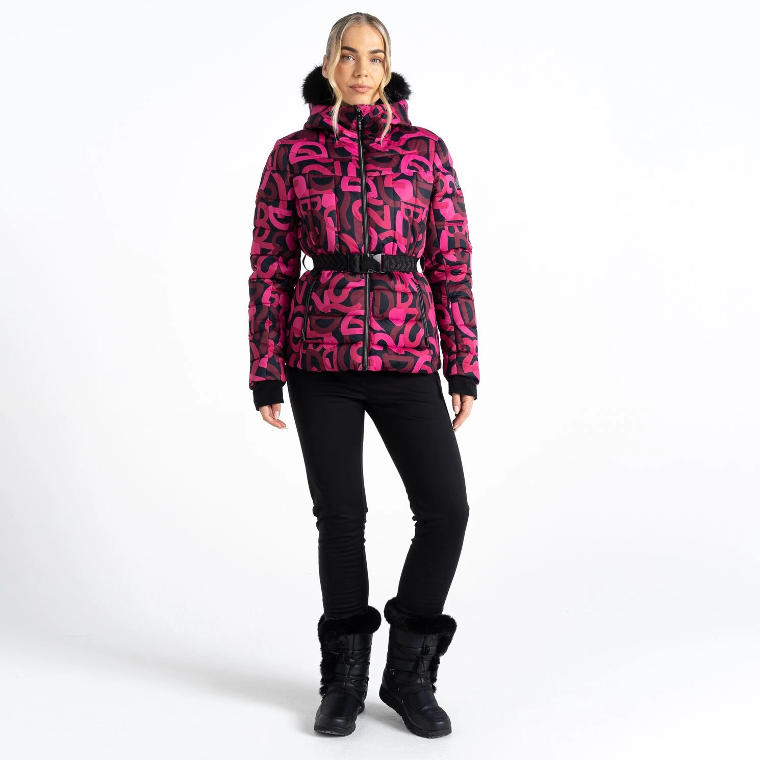 Die Crevasse Jacket Damen Skijacke von Dare 2b bietet ausreichend Schutz auf der Piste. Die Jacke besteht aus wasserdichtem und hoch atmungsaktivem ARED 5000-Gewebe mit einer speziellen wasserabweisenden Behandlung und verschweißten Nähten. Für Wärme sorgen eine recycelte, hochwarme Füllung, ein Polyesterfutter mit glänzendem Fleece-Rückenteil, warme Ärmelbündchen und eine feste, verstellbare Kapuze mit abnehmbarem Kunstpelzbesatz.