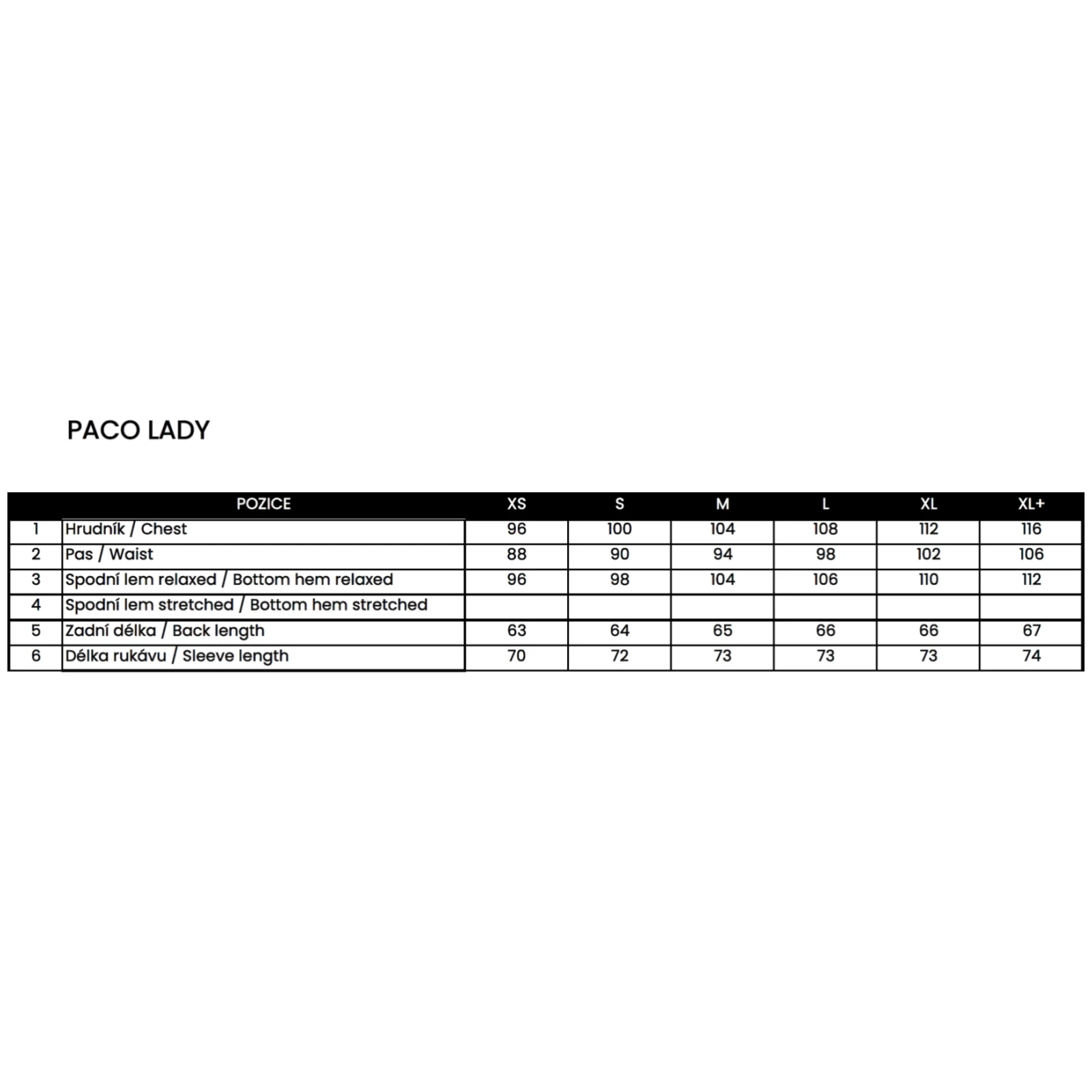 - XS / S / M / L / XL / XXL