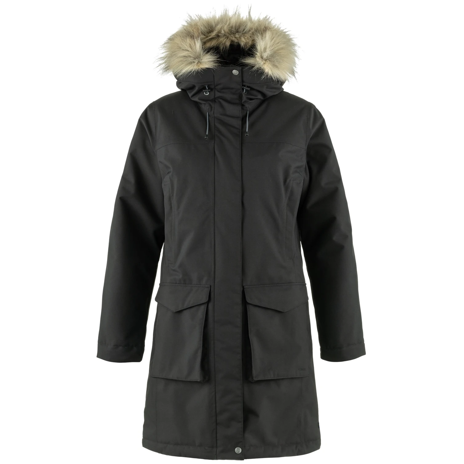 Zu den weiteren Vorzügen des stylischen Mantels zählen eine verstellbare Kapuze mit abnehmbarem Fell, ein Kordelzug in der Taille, verstellbare Ärmelbündchen mit Klettverschluss und ein Zwei-Wege-Reißverschluss mit Schutzklappe. Sie können Ihre Sachen dann in mehreren Taschen verstauen, darunter eine Innentasche mit Reißverschluss, eine Innentasche aus Netzmaterial, von oben zu befüllende Blasebalgtaschen oder isolierte Eingrifftaschen auf Brusthöhe.