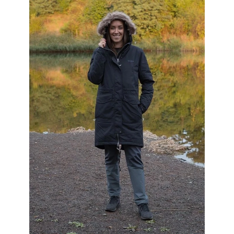 Damen Wintermantel Husky Nelidas L für den Alltag in der Stadt und im Freien. Durch das gesteppte Futter in Kombination mit Microplüschist der Mantel sehr warm . Der Mantel ist wasserdicht dank einer Membran mit einer Wassersäule von 10.000 mm und wird zusätzlich durch eine DWR -Behandlung verstärkt.