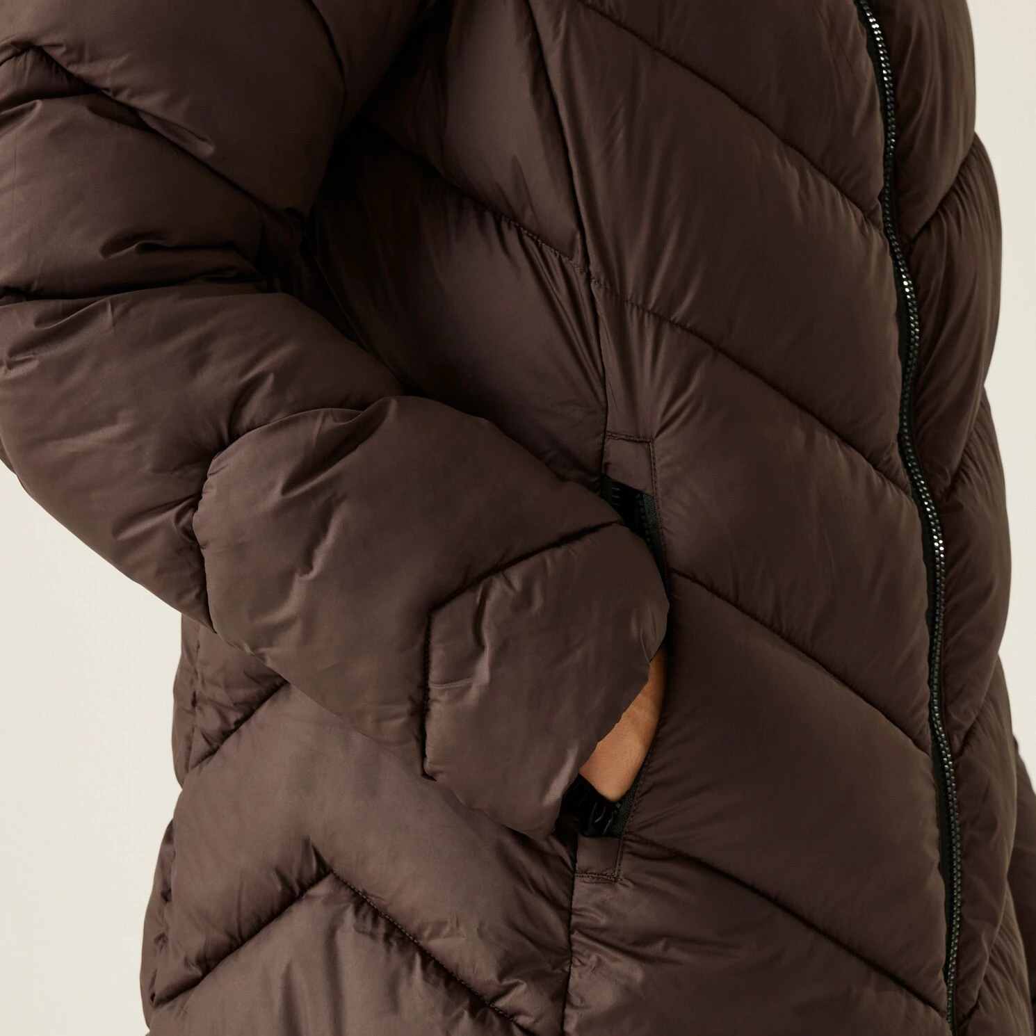Der Damen-Wintermantel Andia II der Marke Regatta bietet maximale Wärme und Schutz, ohne den Stil zu vernachlässigen. Dieser Mantel besteht aus recyceltem 100 % Polyestergewebeund unterstützt die ökologische Nachhaltigkeit , während er dank einer wasserabweisenden Beschichtung gleichzeitig widerstandsfähig gegen widrige Winterbedingungen ist.