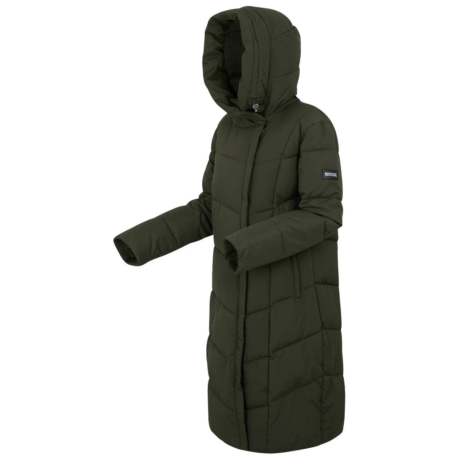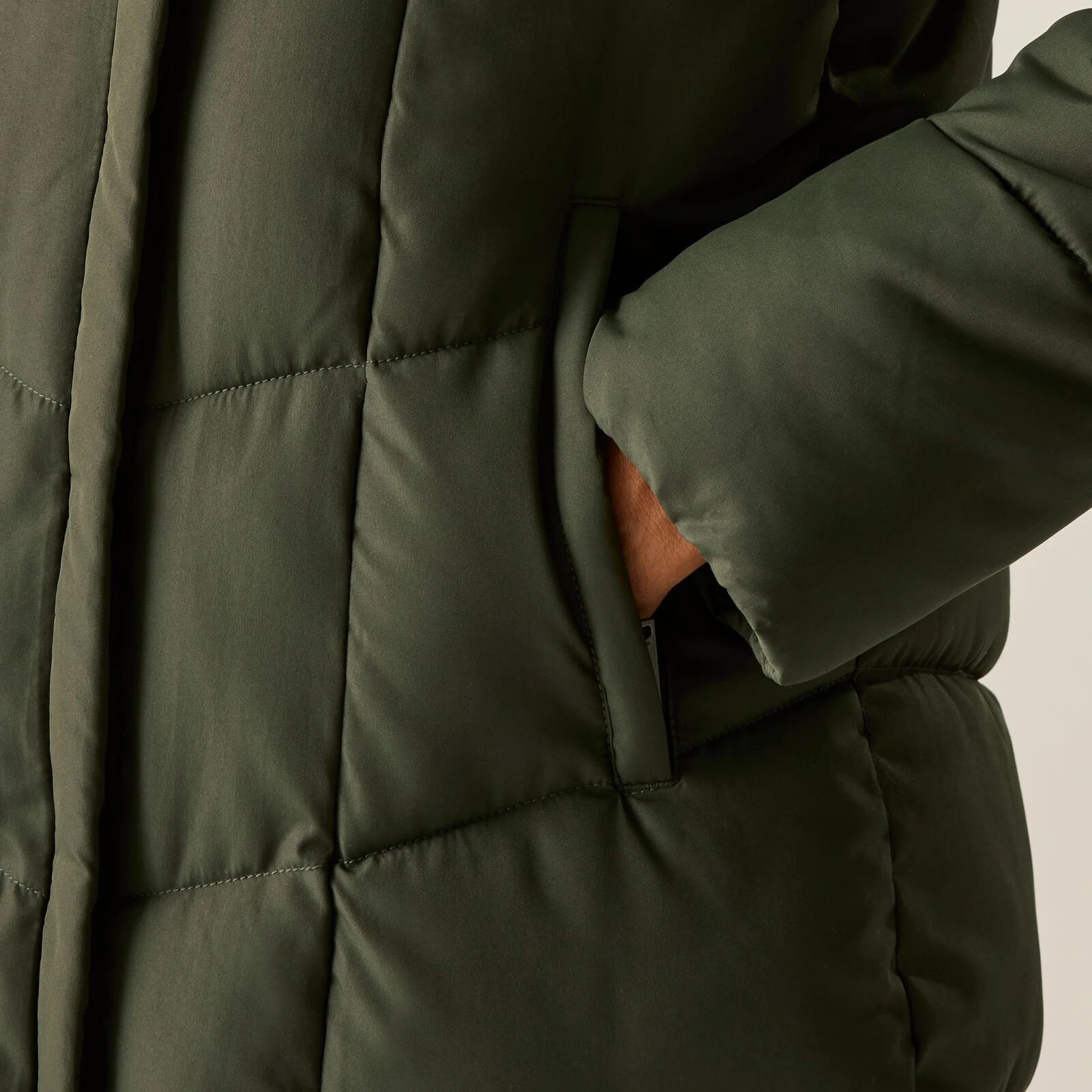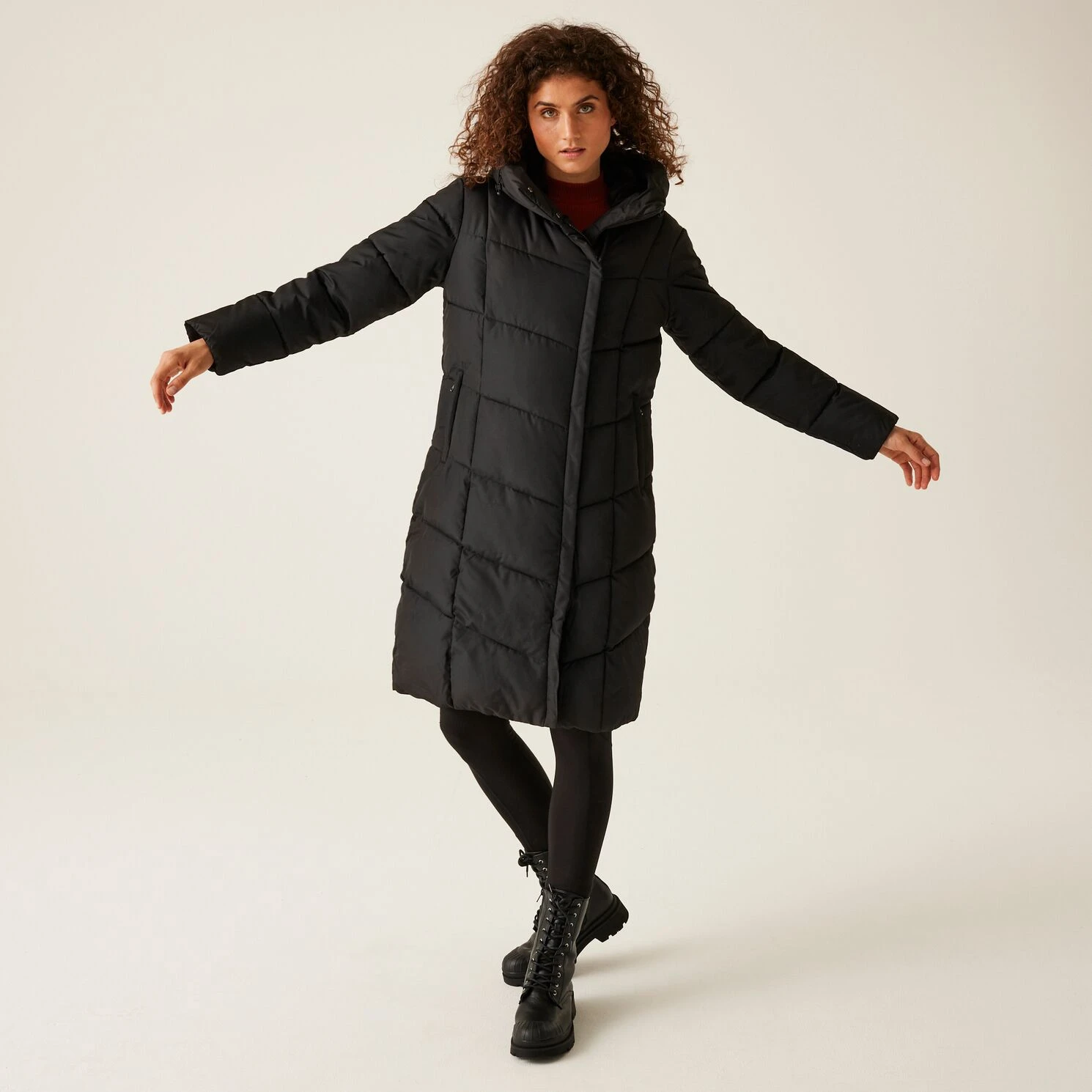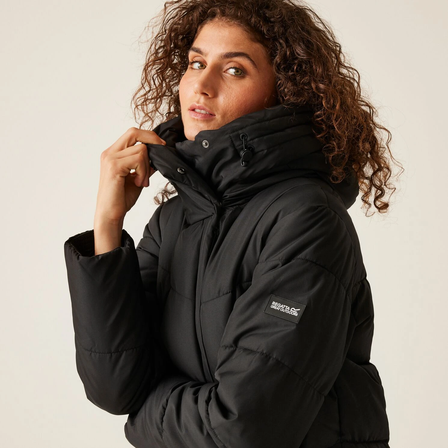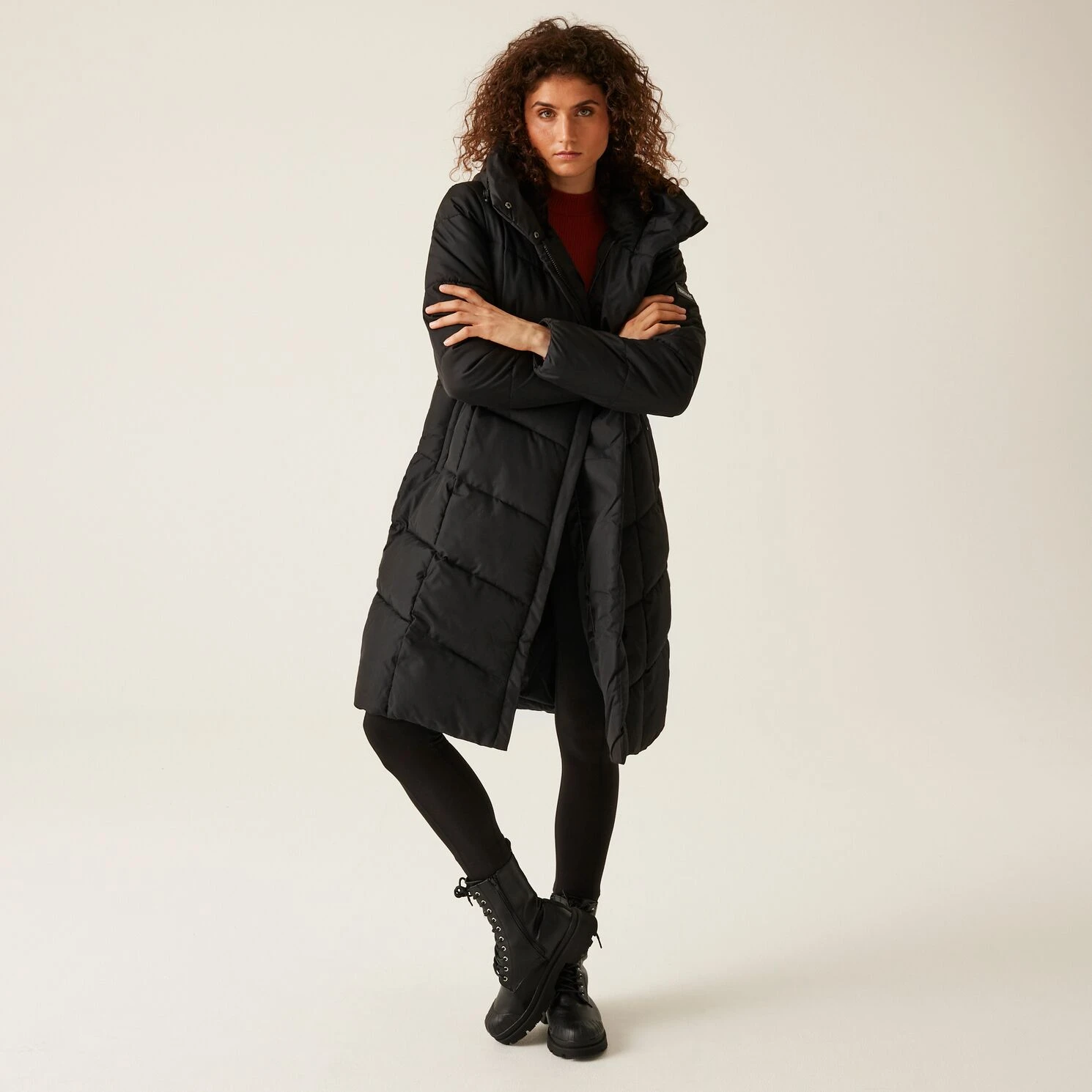 Der Damen-Wintermantel Nurie der Marke Regatta ist die ideale Wahl für die Wintersaison, wenn Sie eine Kombination aus Eleganz und praktischen Funktionen suchen. Dieser Mantel besteht aus recyceltem Polyestergewebe, das Wasser abweist und Feuchtigkeit widersteht.