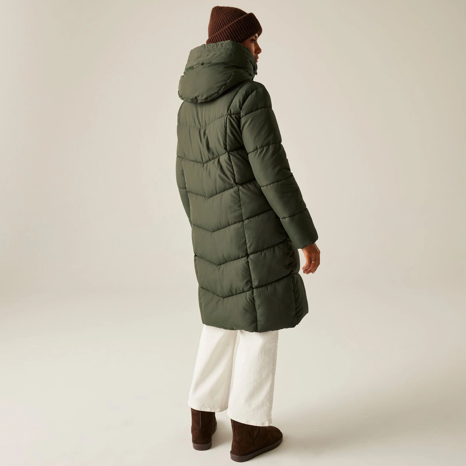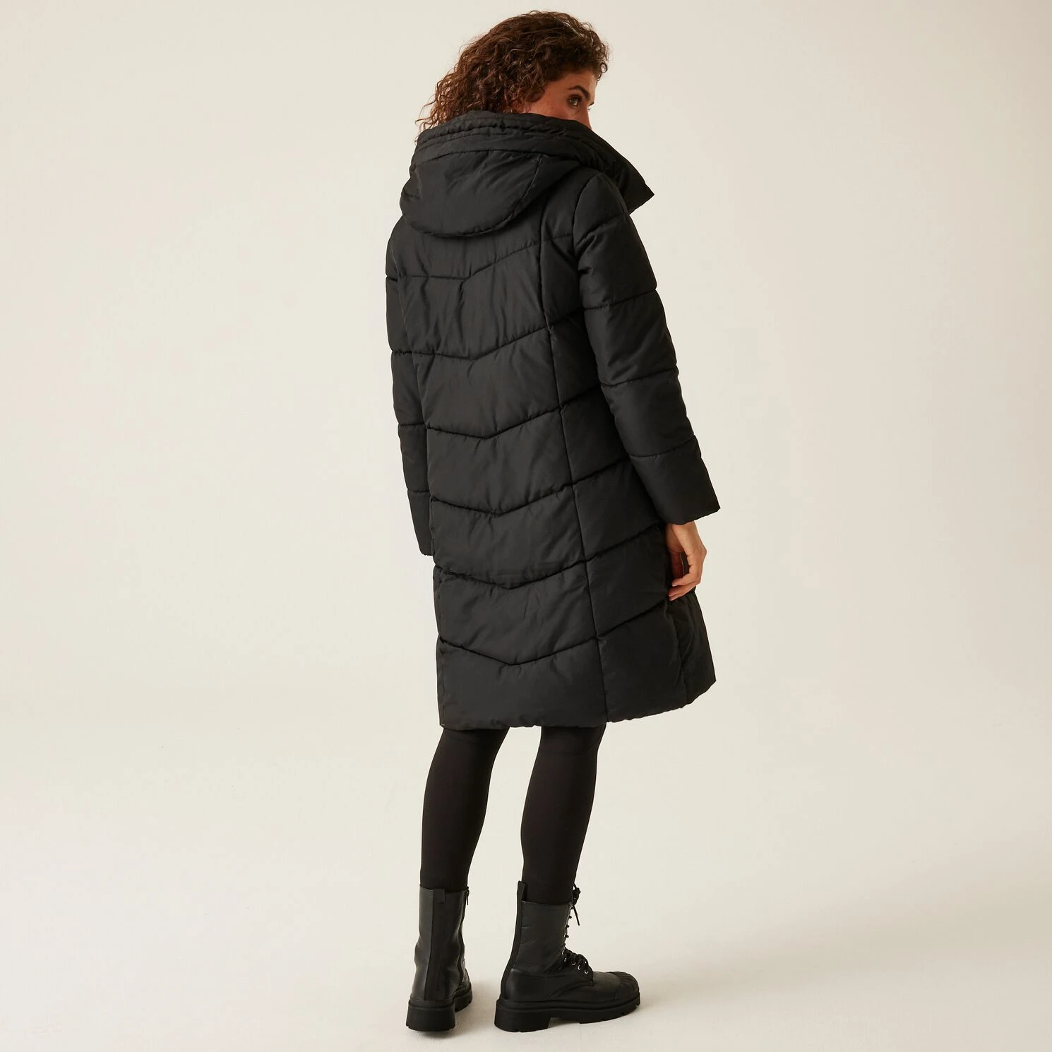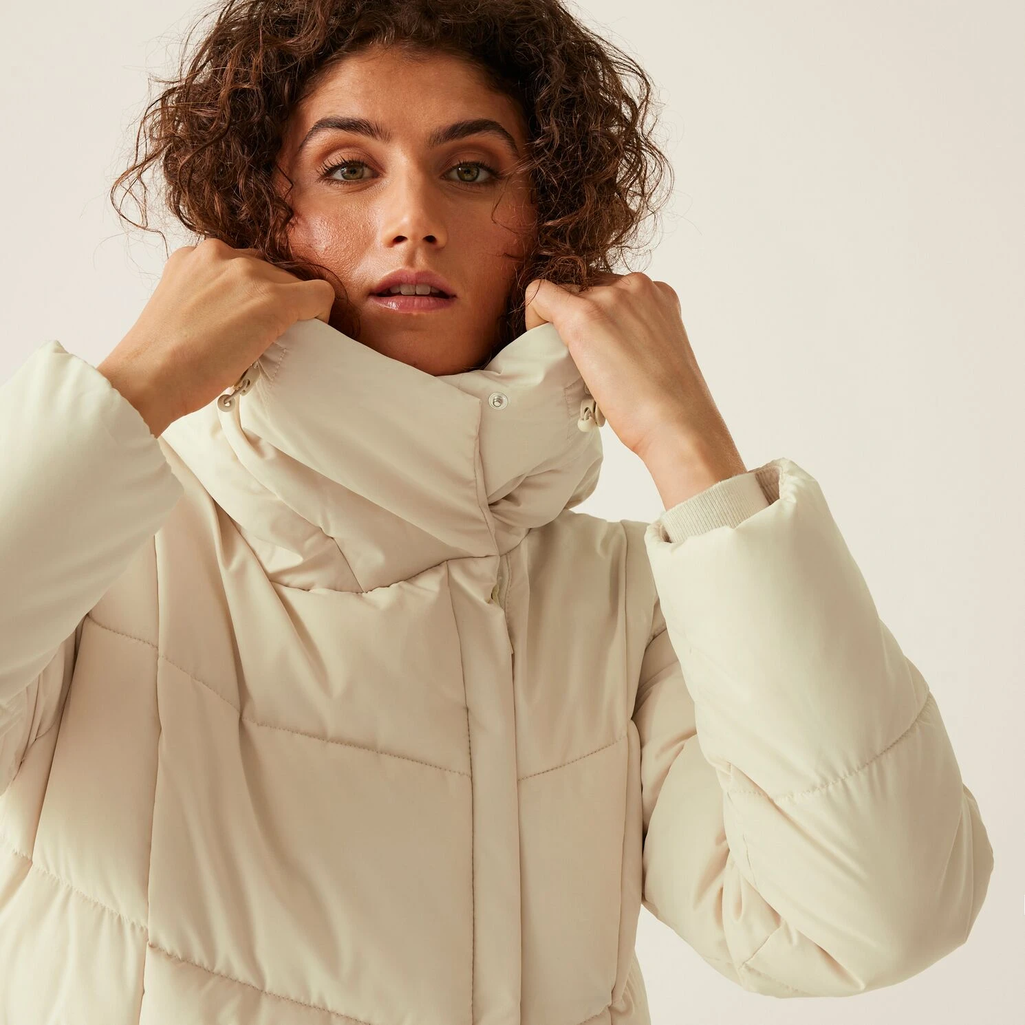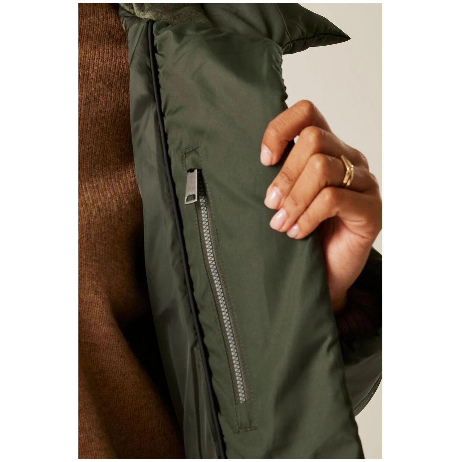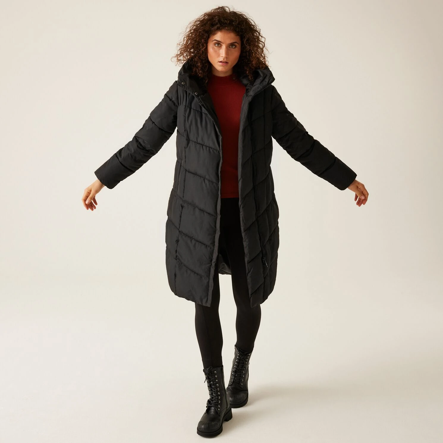 Der Damen-Wintermantel Nurie der Marke Regatta ist die ideale Wahl für die Wintersaison, wenn Sie eine Kombination aus Eleganz und praktischen Funktionen suchen. Dieser Mantel besteht aus recyceltem Polyestergewebe, das Wasser abweist und Feuchtigkeit widersteht.