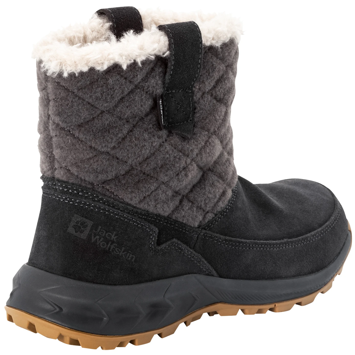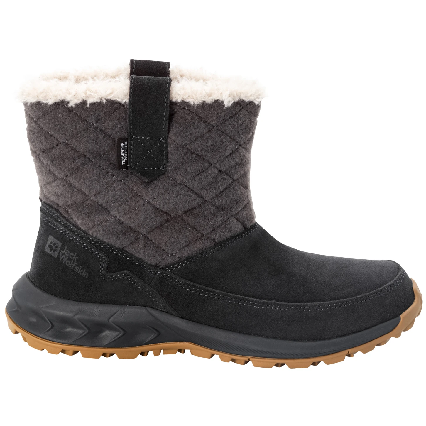 Winterstiefel Queenstown Texapore Boot W von Jack Wolfskin haben einen Knöchelschnitt und ein Obermaterial aus Wildleder, das Sie bei jedem Wetter schützt. Dank der nachhaltig produzierten Texapore Ecosphere-Membran ist der Schuh absolut wasserdicht. Durch den praktischen Schnitt des Schuhs ist das Anziehen ganz einfach und schnell.