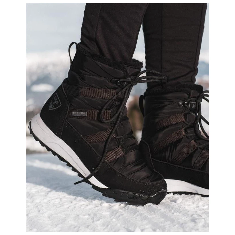 Die hohen Damen-Winterstiefel Kilpi Candy High Wp-W sind warm und wasserdicht genug, sodass sie einen Spaziergang durch eine verschneite Landschaft problemlos überstehen oder Sie beim Warten auf den Bus warm halten.