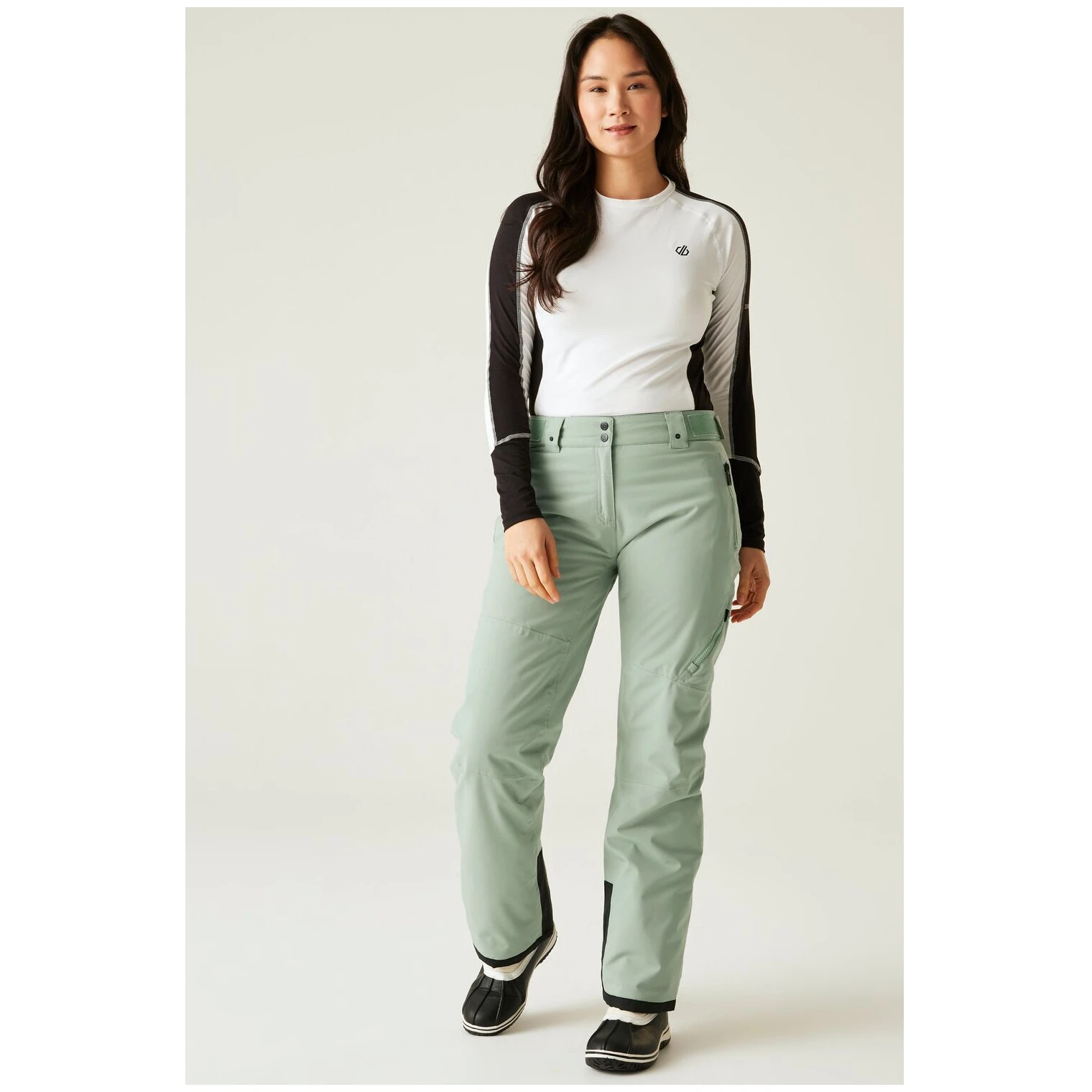 DieDamen Skihose Ice Pant von Dare 2b bietet perfekten Schutz auf der Piste. Sie bestehen aus wasserdichtem und hoch atmungsaktivem ARED 20/30-Gewebemit einer wasserabweisenden Beschichtung und verschweißten Nähten. Für thermischen Komfort sorgen eine recycelte, hochwärmende Wattierung und ein vollständig elastisches Futter, das sich den Bewegungen des Körpers anpasst.