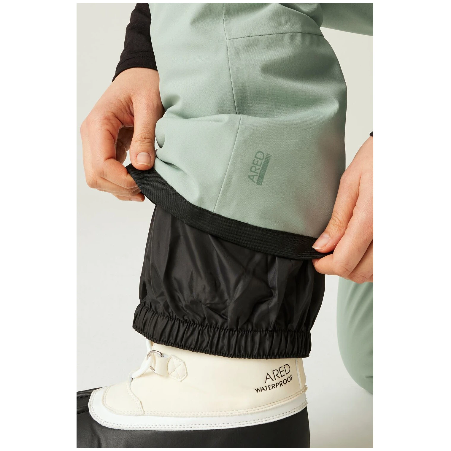 Die Hose verfügt außerdem über Schneebündchen, Druckknopf- und Reißverschluss, ein verstellbares Taillensystem mit hoher Taille, viele praktische Taschen, eine vorgeformte Kniepartie für uneingeschränkte Bewegungsfreiheit und abriebfestes Gewebe an der Innenseite des Knöchels.