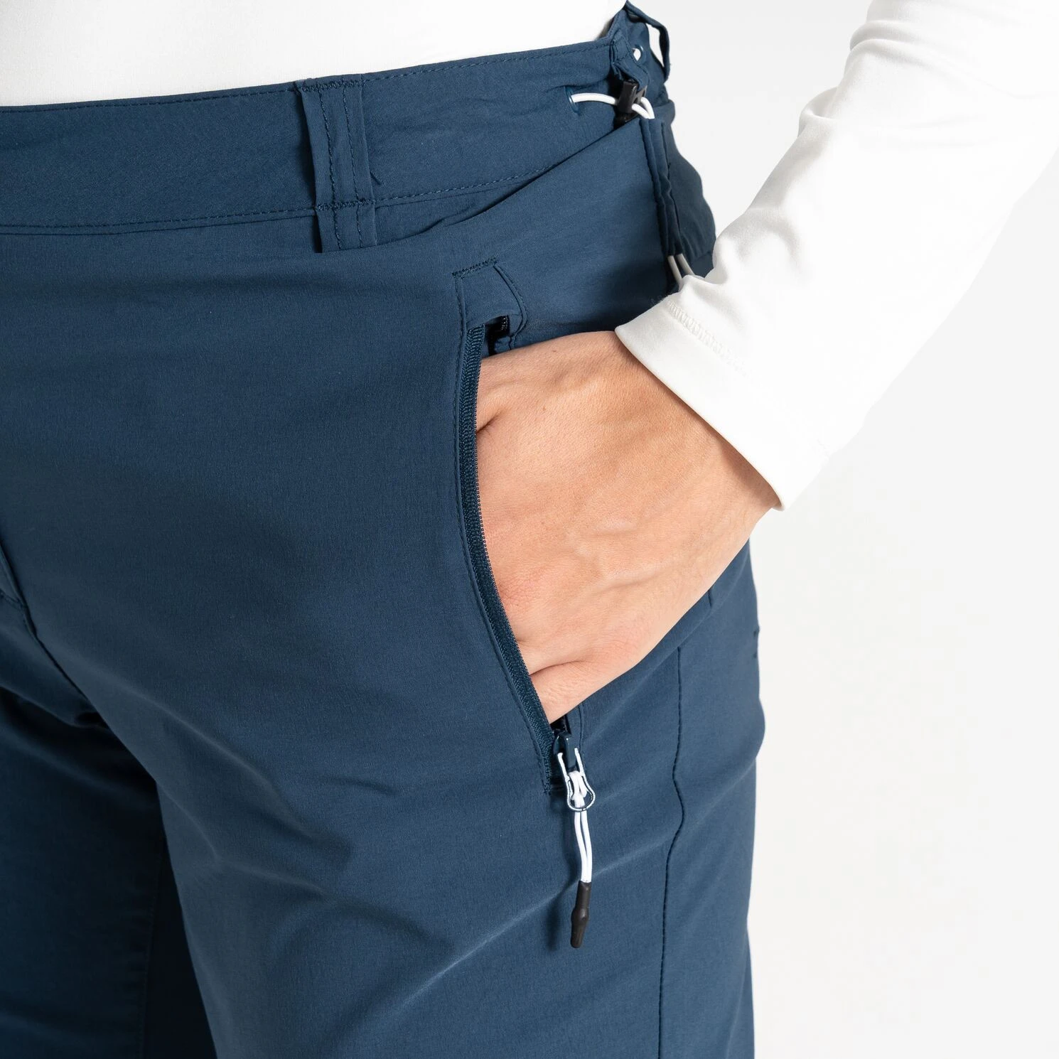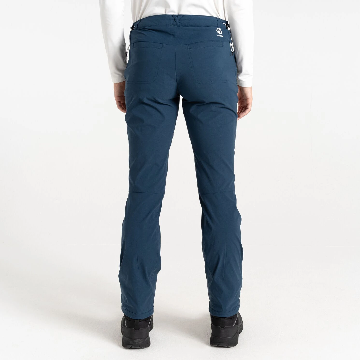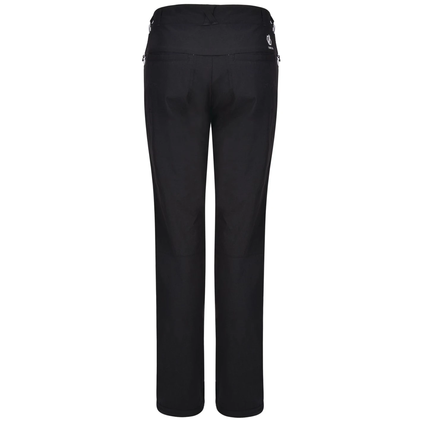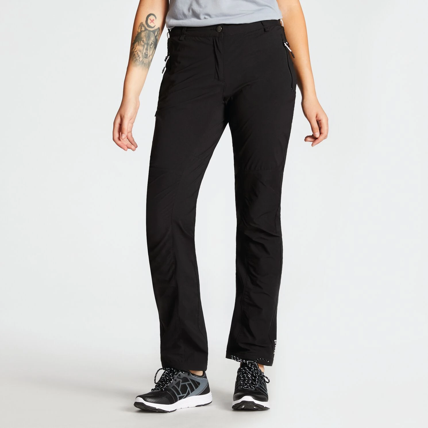 Die Melodic II Damen Outdoorhose der Marke Dare2b besteht aus leichtem, dehnbarem Material mit wasserabweisender Beschichtung. Die Taille ist verstellbar und der Verschluss erfolgt klassisch mit Reißverschluss und Knopf. Die Hose hat zwei Vorder- und zwei Gesäßtaschen. Das linke Bein ist mit dem Dare2be-Logo verziert. Vorgeformte Knie ermöglichen Bewegungsfreiheit. Dank des flexiblen Materials eignet sich die Hose für leichte Wanderungen.