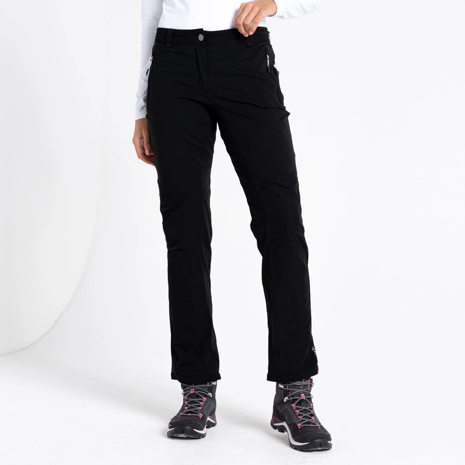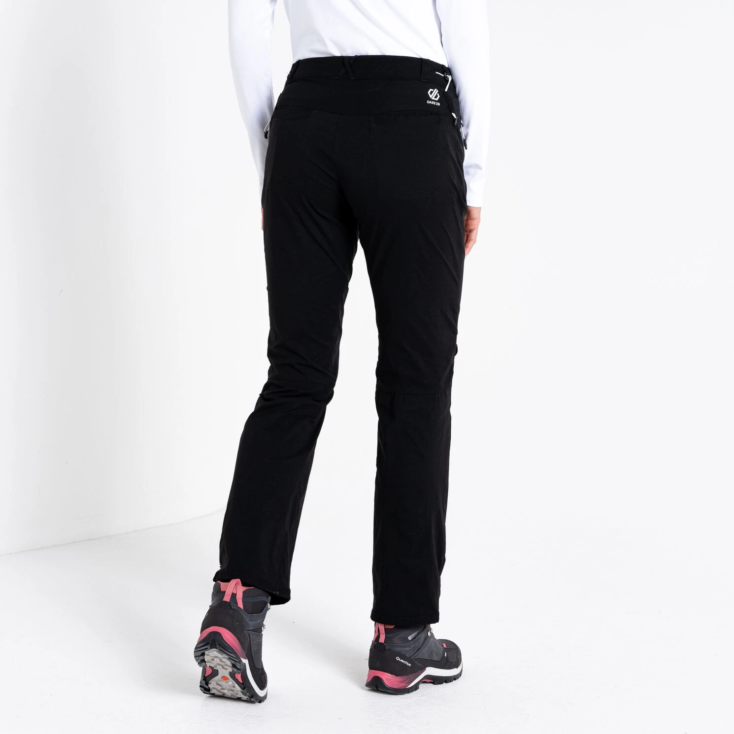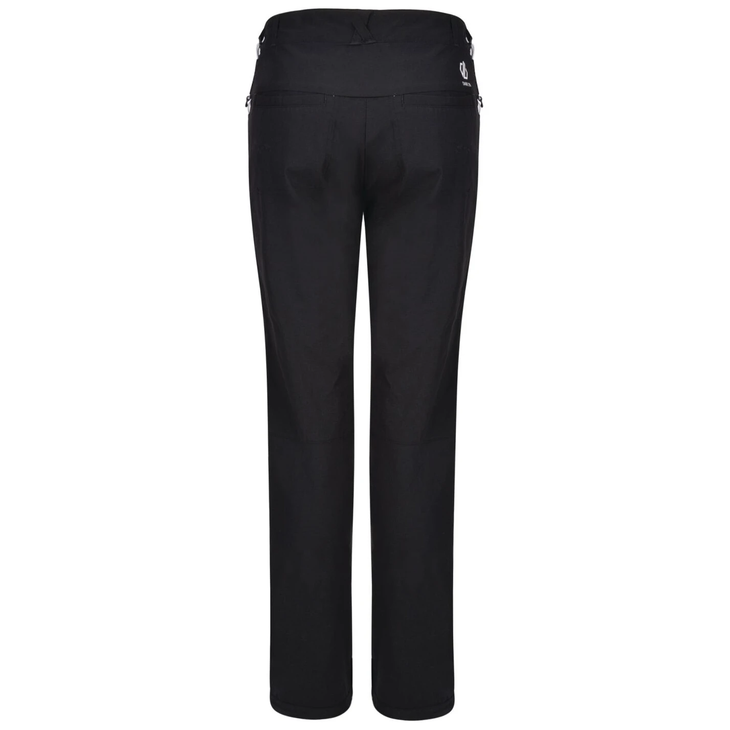 Die Damen Outdoorhose Melodic II von Dare2b besteht aus leichtem, dehnbarem Material mit wasserabweisender Beschichtung. Die Taille ist verstellbar und der Verschluss erfolgt klassisch mit Reißverschluss und Knopf. Die Hose hat zwei Vorder- und zwei Gesäßtaschen. Das linke Bein ist mit dem Dare2be-Logo verziert. Vorgeformte Knie ermöglichen Bewegungsfreiheit. Dank des flexiblen Materials eignet sich die Hose für leichte Wanderungen.