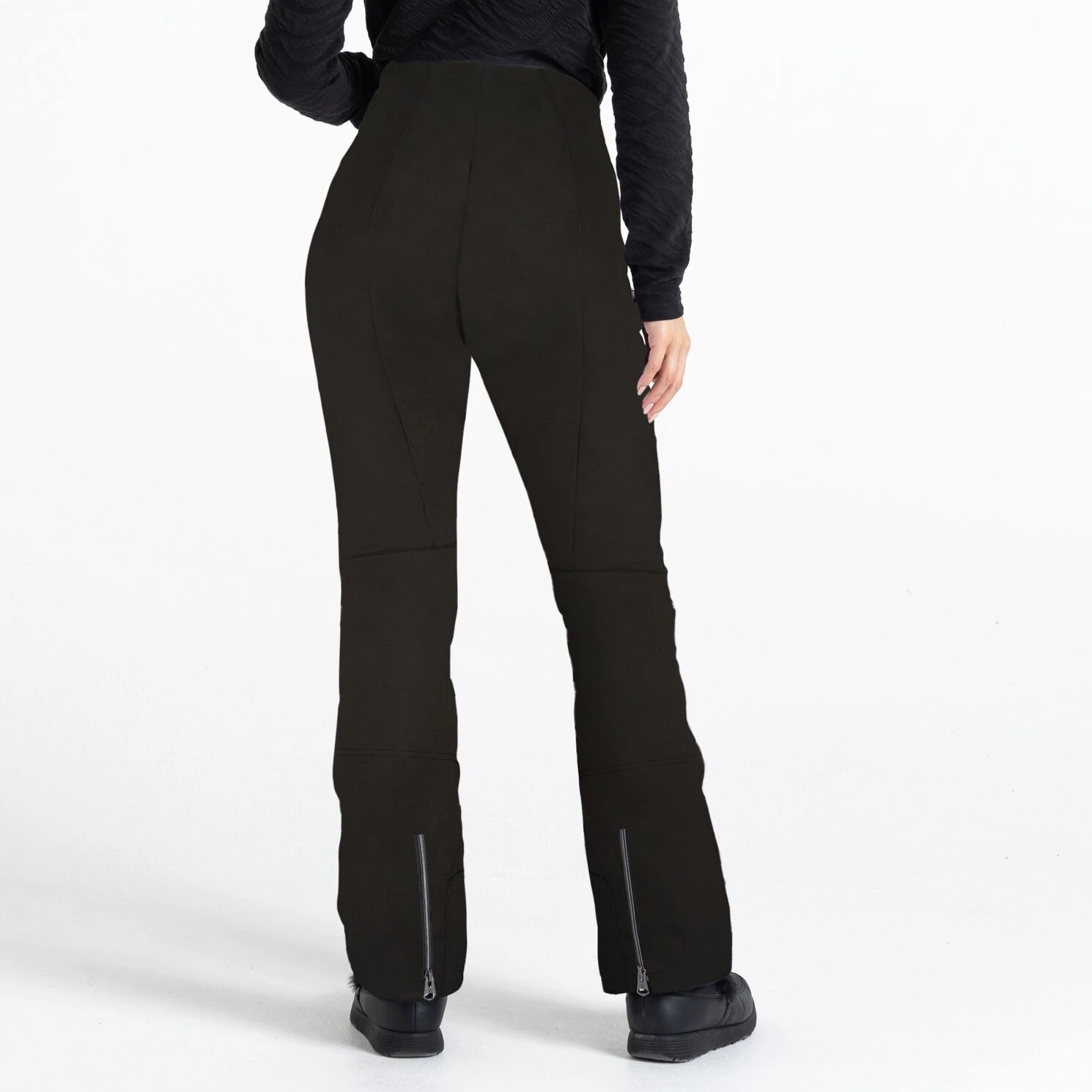 - schmale Hose mit Stiefelsaum und Zippern in Metalloptik