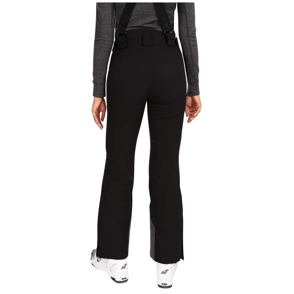 Damen Skihose Kilpi ELARE-W besteht aus Membranmaterial SIBERIUM mit einer Wassersäule von 10.000 mm und verschweißten kritischen Nähten. Das Material ist äußerst strapazierfähig und zuverlässig und garantiert Ihnen in Kombination mit dem elastischen Futter und der weichen, warmen Synthetikfüllung Wärme und Komfort während eines Tages auf der Piste. Die Hose hat 2 Reißverschlusstaschen, einen erhöhten Bund mit Klettverschlussregulierung und abnehmbare Hosenträger. In der linken Innentasche befindet sich ein praktischer Schlüsselring. Die Unterhose mit Reißverschlussöffnung ist mit Anti-Trench-Gewebe verstärkt. Die innenliegende Schneemanschette verhindert, dass Schnee in die Stiefel eindringt.