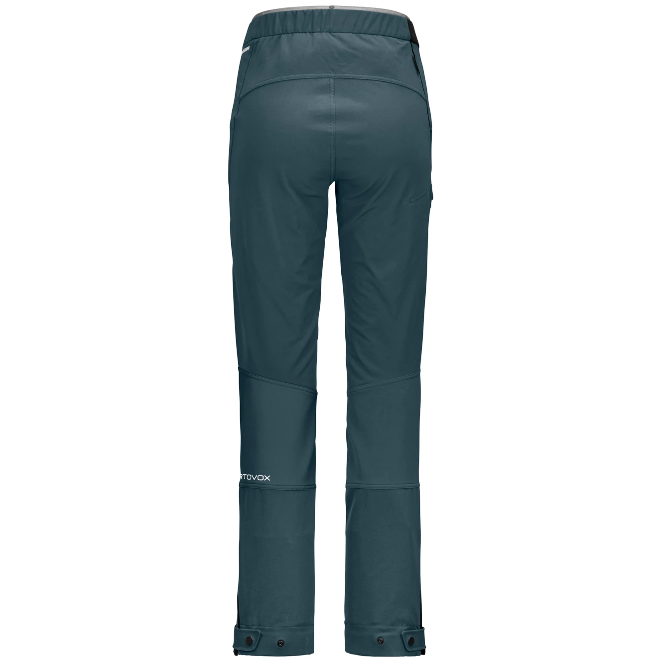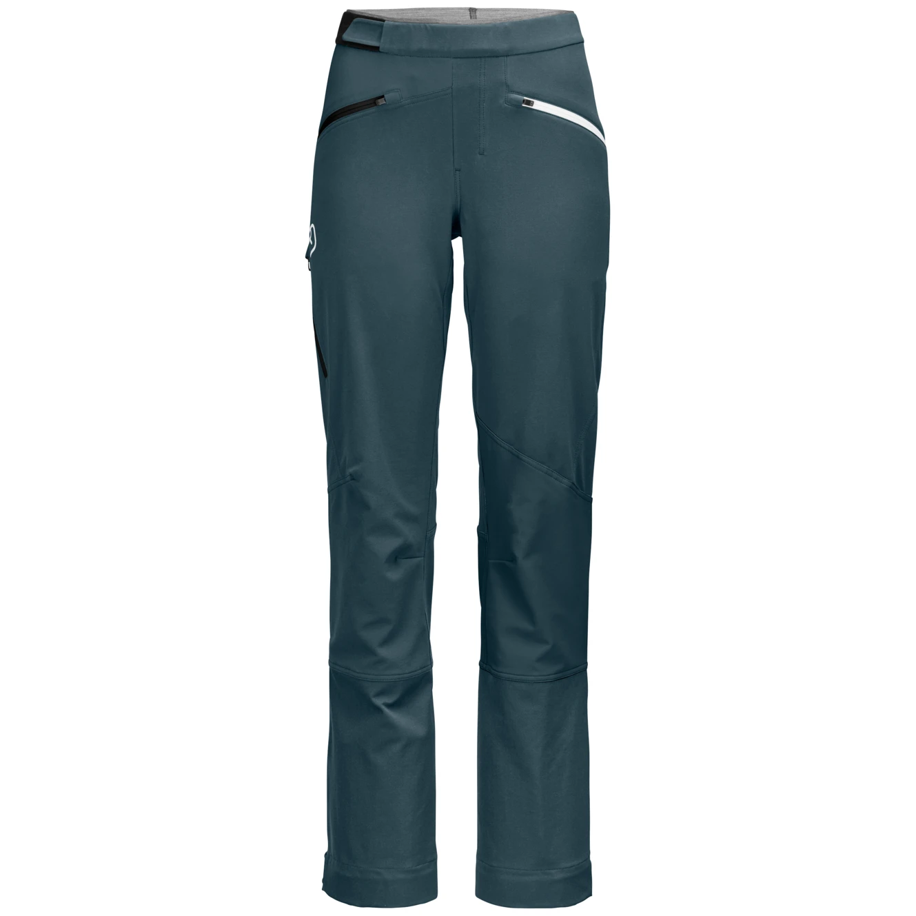 Damen Softshellhose Col Becchei Pants M von Ortovox ist die ideale Wahl für Skibergsteigen und Skitourengehen. Die technische Hose besteht aus einem sehr strapazierfähigen und dehnbaren Softshell-Material MERINO NATURTEC LIGHT der Schweizer Firma Schoeller®, Dadurch bleibt kein Schmutz daran haften und Wassertropfen können nicht ablaufen. Der spezielle Strick ist winddicht, hoch atmungsaktiv und trocknet schnell. und verfügt über eine hohe mechanische Beständigkeit.