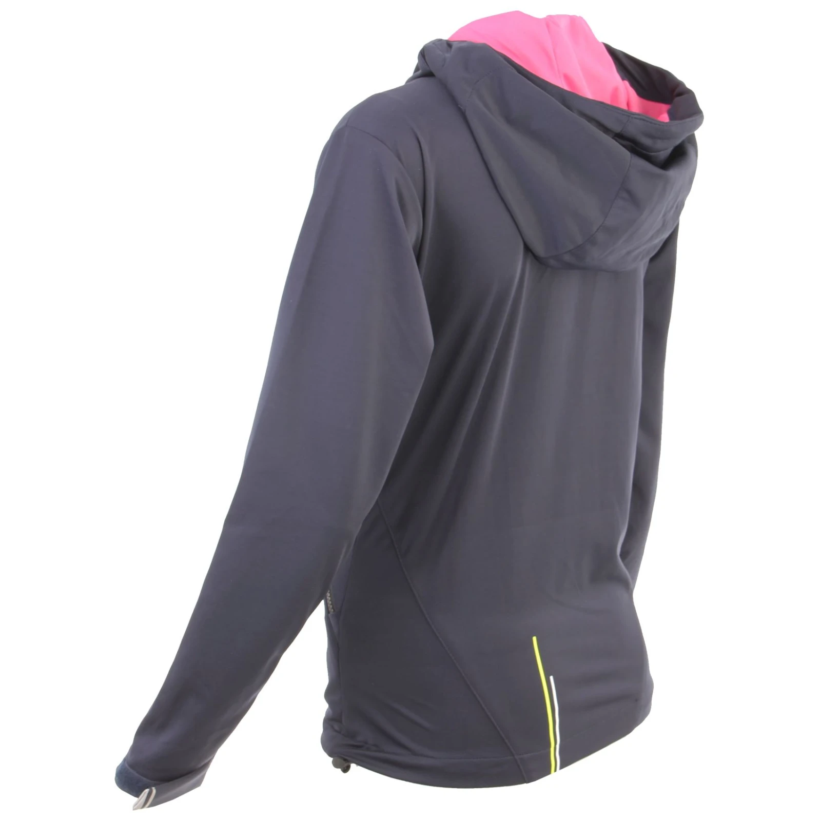 Die Jacke hat eine verstellbare Kapuze, zwei Reißverschlusstaschen vorne, Bündchen und einen lockeren Abschluss mit Kordelzug. Das Material ist leicht, nicht isoliert, flexibel und fühlt sich angenehm an und verfügt über eine Membran, die vor Wind und Regen schützt. Die Jacke hat eine lockerere Passform und kann daher in Kombination mit einer isolierenden Mittelschicht verwendet werden. Für Ihre Sicherheit verfügt die Jacke über dezente Reflektoraufdrucke.