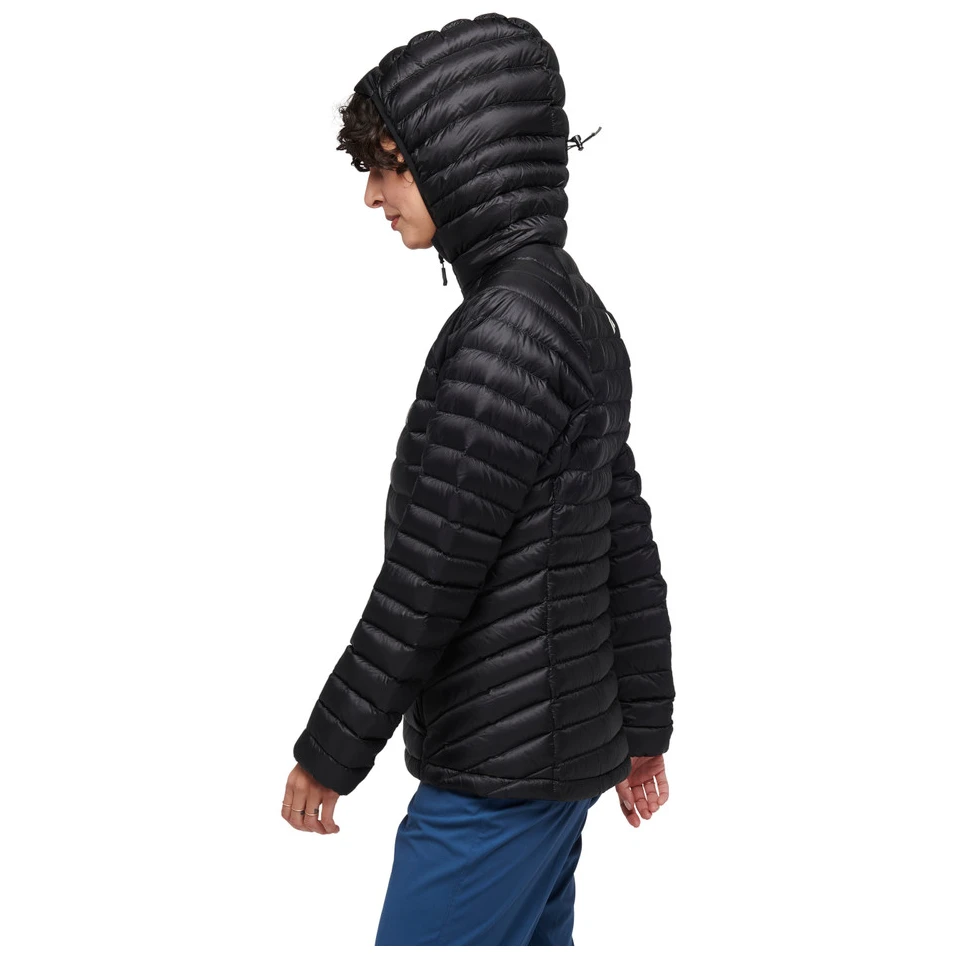 Der Approach Down Hoody von Black Diamondist von der Zeit inspiriert, als man ohne Rucksack und Gepäck unterwegs war. Er lässt sich auf schnellen Mehrseillängen-Kletterrouten problemlos über einer Sonnenhaube tragen oder beim Eisklettern und bei alpinen Touren unter einer Jacke.