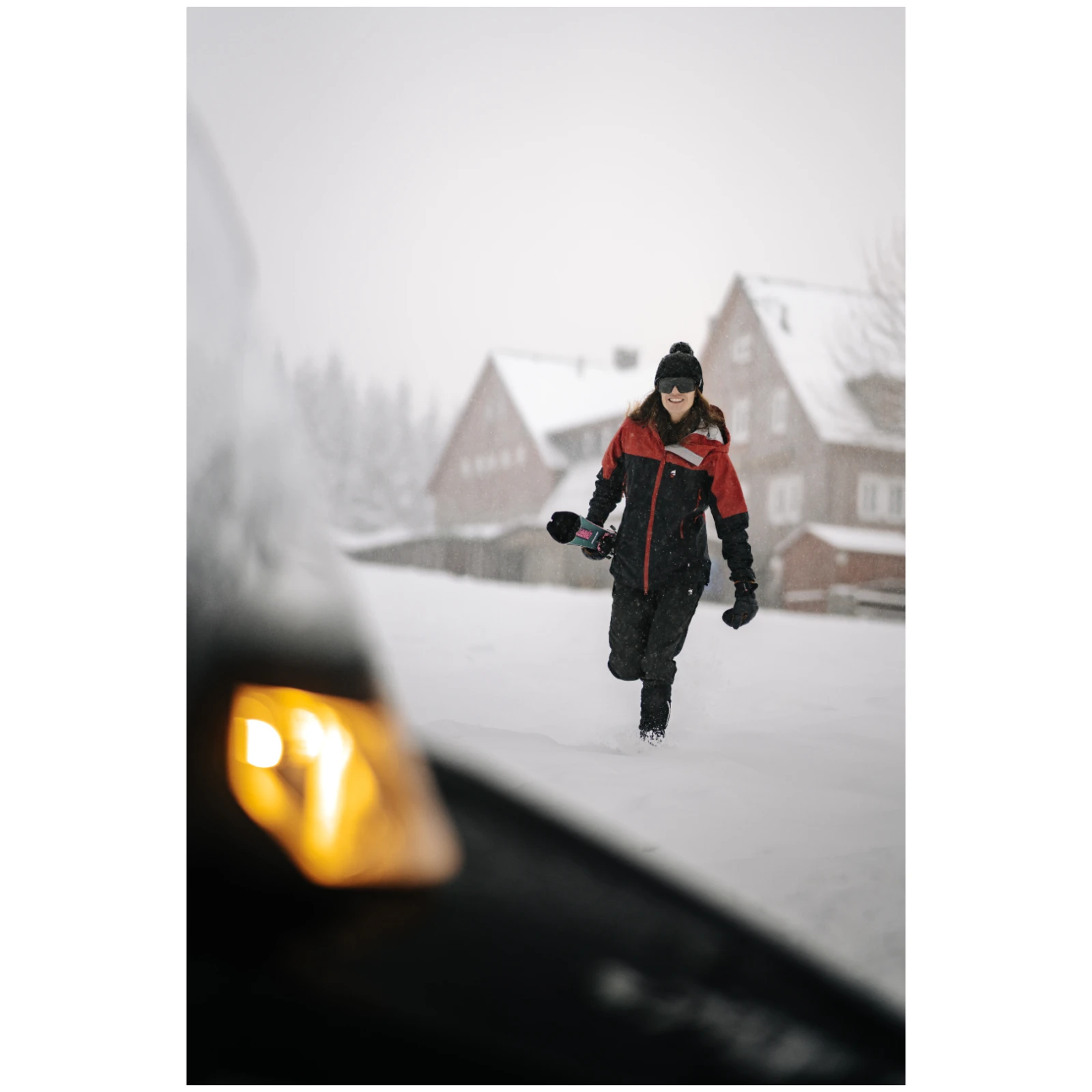 Für Handschuhe oder zum Verstecken der Hände bietet die Jacke zwei geräumige Taschen, die zudem optimal zugänglich sind. Alle Taschen sind oben mit laminierten „Garagen“ ausgestattet, die die oberen Taschenöffnungen und die YKK-Reißverschlussschieber abdecken. Auf dem Futter befindet sich beispielsweise eine laminierte Innentasche . Für Dokumente oder das Handy bietet die Jacke außerdem eine Kapuze aus Microfleece mit 3D-Stitching und verstärktem Schirm, die sich unter einem Helm tragen lässt und zudem mit einer Hand einfach und schnell zu bedienen ist.