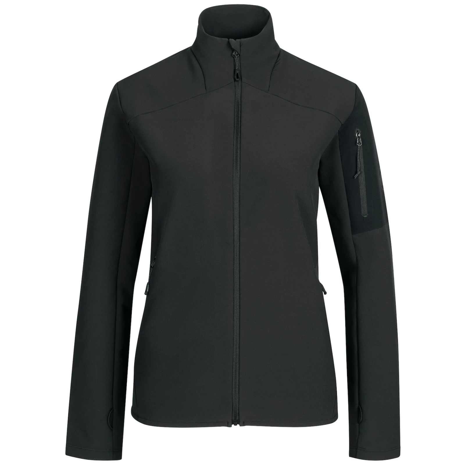 Die Madris ML Jacket Women der Schweizer Marke Mammut ist eine ideale Wahl für Bergwanderungen, kann aber auch im Trubel der Großstadt eingesetzt werden. Die Jacke kann als Zwischenschicht verwendet werden und hält zuverlässig warm. Das Material ist eine Mischung aus Polyester und Elasthan, was es sehr bequem und dehnbarmacht. Durch die Doppelgewebekonstruktion ist die Jacke windabweisend. Eine spezielle DWR -Behandlung sorgt für Wasserabweisung.