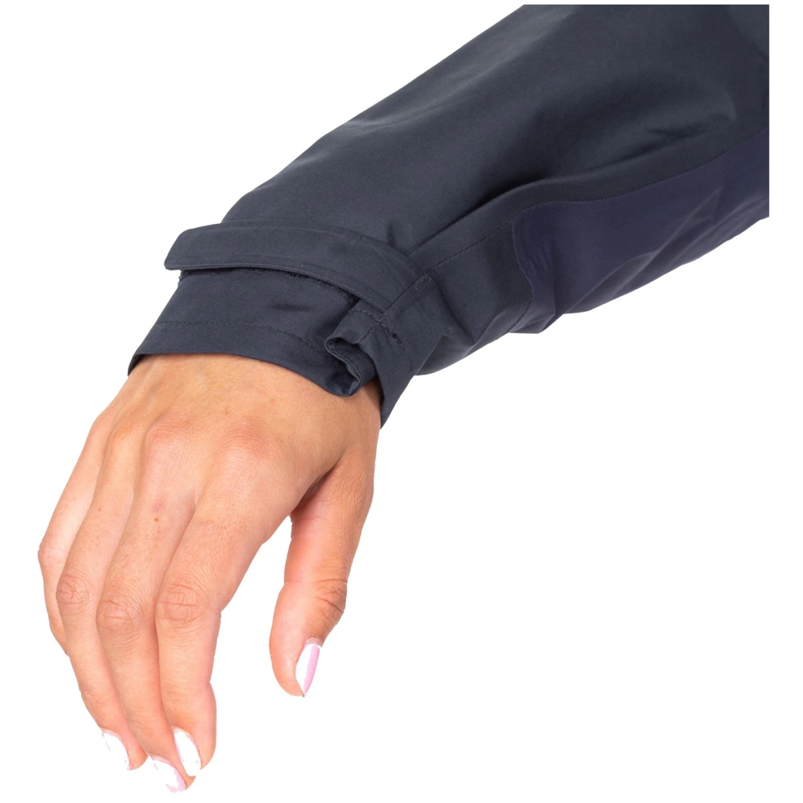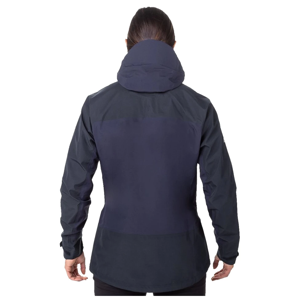 Die Jacke hat eine Kapuze, die groß genug ist, damit auch ein Kletterhelm hineinpasst. Die Kapuze ist zusätzlich mit einem verstärkten Schirm ausgestattet und lässt sich für ein angenehmeres Tragen auch ohne Helm herunterziehen. Die Ärmel bestehen aus einem Stück mit Einsätzen, die so platziert sind, dass die Bewegung so natürlich und uneingeschränkt wie möglich ist. Die Ärmelbündchen sind schräg und lassen sich per Klettverschlussfestziehen, sodass weder Wasser, Schnee noch kalter Wind eindringen kann. Der Schnitt der Jacke ermöglicht das Einbauen zusätzlicher Isolationsschichten. Die Jacke verfügt außerdem über eine Unterarmbelüftung mit Reißverschluss, zwei große Taschen mit YKK WR-Reißverschlüssen und einem Einweg- YKK Aquaguard-Reißverschluss, der vom Spitzenmodell des Herstellers stammt.