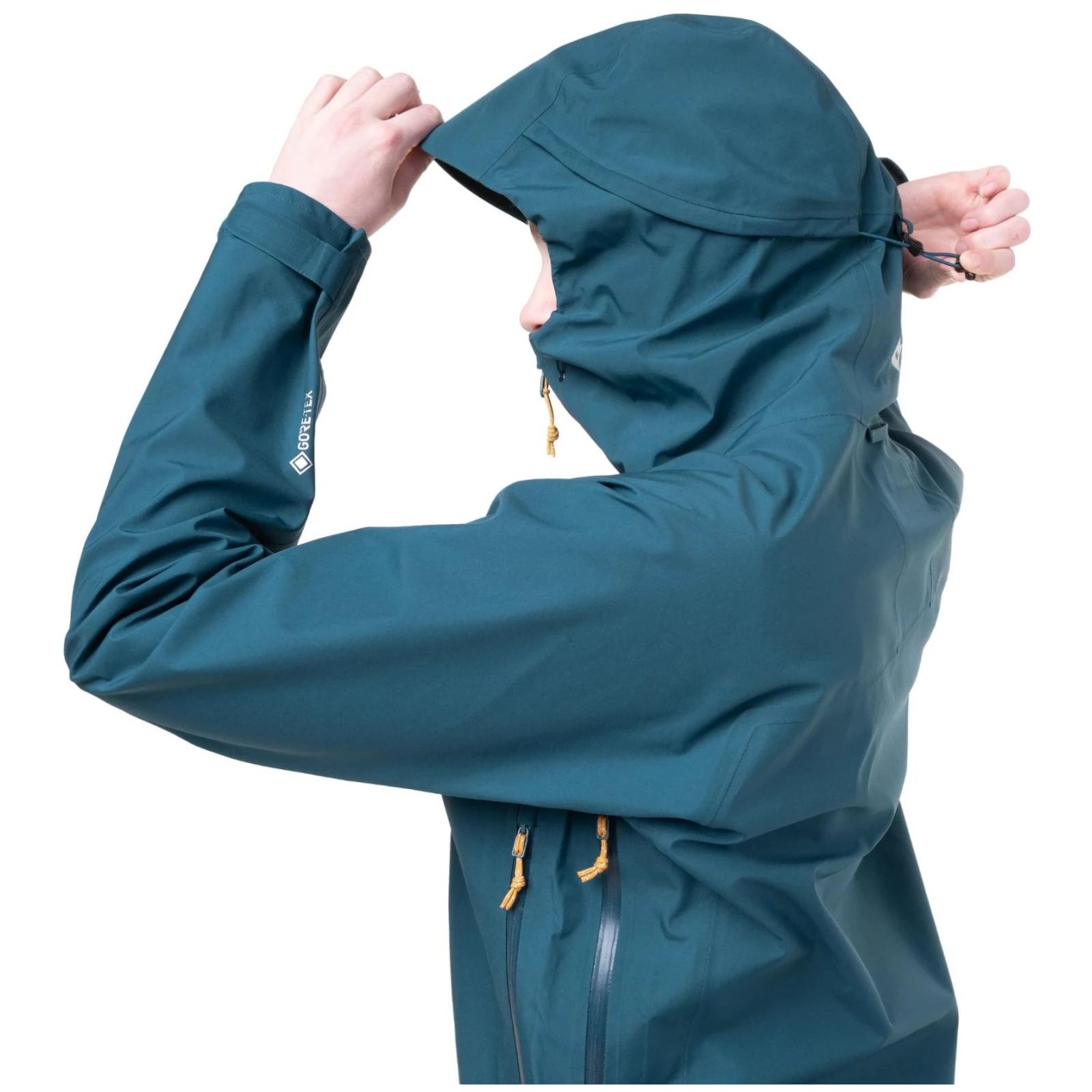 Eine hohe Funktionalität wird durch die komplett verstellbare KapuzeMountain Hood und präzise ausgearbeitete Details wie geformte Ärmel mit Bündchen, die sich durch Klettverschluss verstellen lassen, sowie einen Kordelzug am unteren Saum garantiert. Der SchnittAlpine Fit ermöglicht das Tragen zusätzlicher Unterbekleidungsschichten, ohne die Bewegungsfreiheit einzuschränken. Darüber hinaus ist die Jacke mit einer Reißverschlussbelüftung im Achselbereich, zwei großen Taschen mit YKK® WR-Reißverschlüssen und einem zweiseitigen, geformten und wasserdichten YKK Aquaguard-Reißverschluss mit Innenklappe ausgestattet.