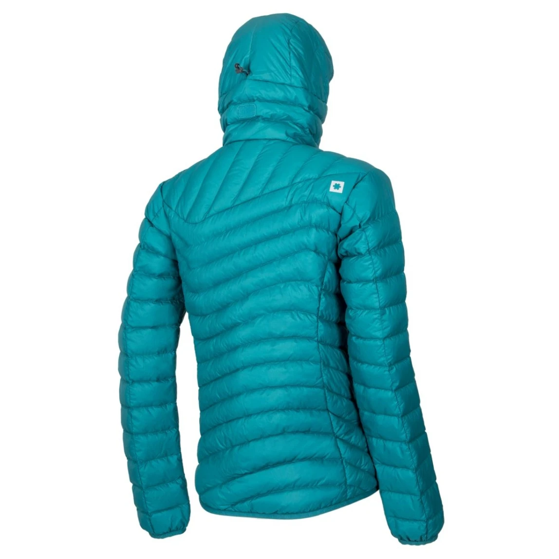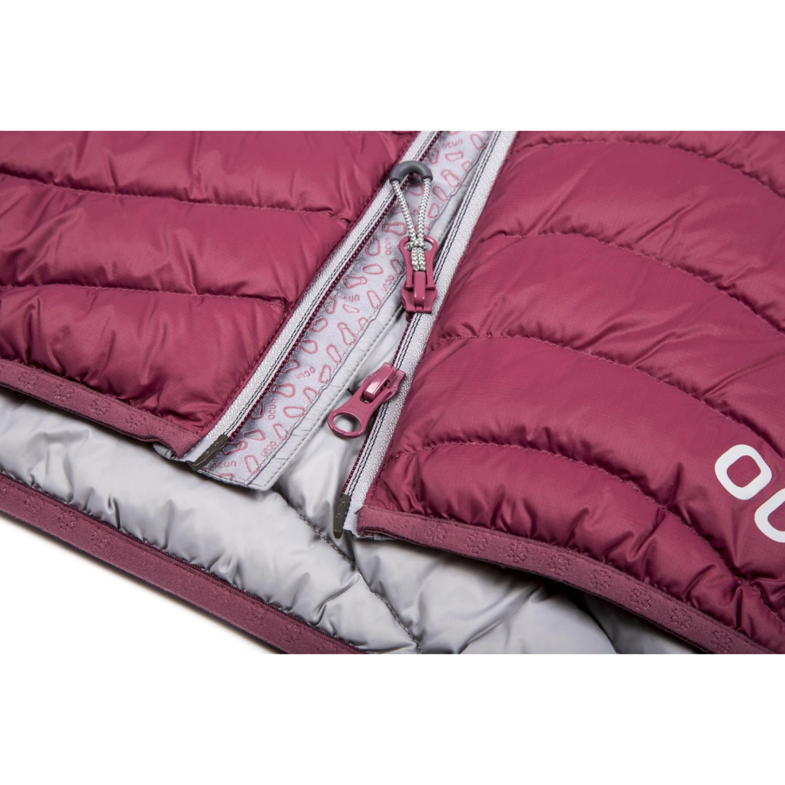 Ocún Tsunami ECO Women ist eine Daunenjacke für Damen aus 100 % recyceltem Polyamid und gefüllt mit Entenfedern. Die Jacke ist leicht und wiegt nur 370. Ergonomischer Schnitt, geeignet zum Klettern, Skibergsteigen und Reisen. Länglicher Körper, im Ärmel befindet sich ein Daumenloch, damit Sie Ihre Hände in die Ärmel stecken können. Im Inneren befinden sich geräumige Taschen für die Kletterschuhe, damit diese beim Winterbouldern nicht einfrieren.