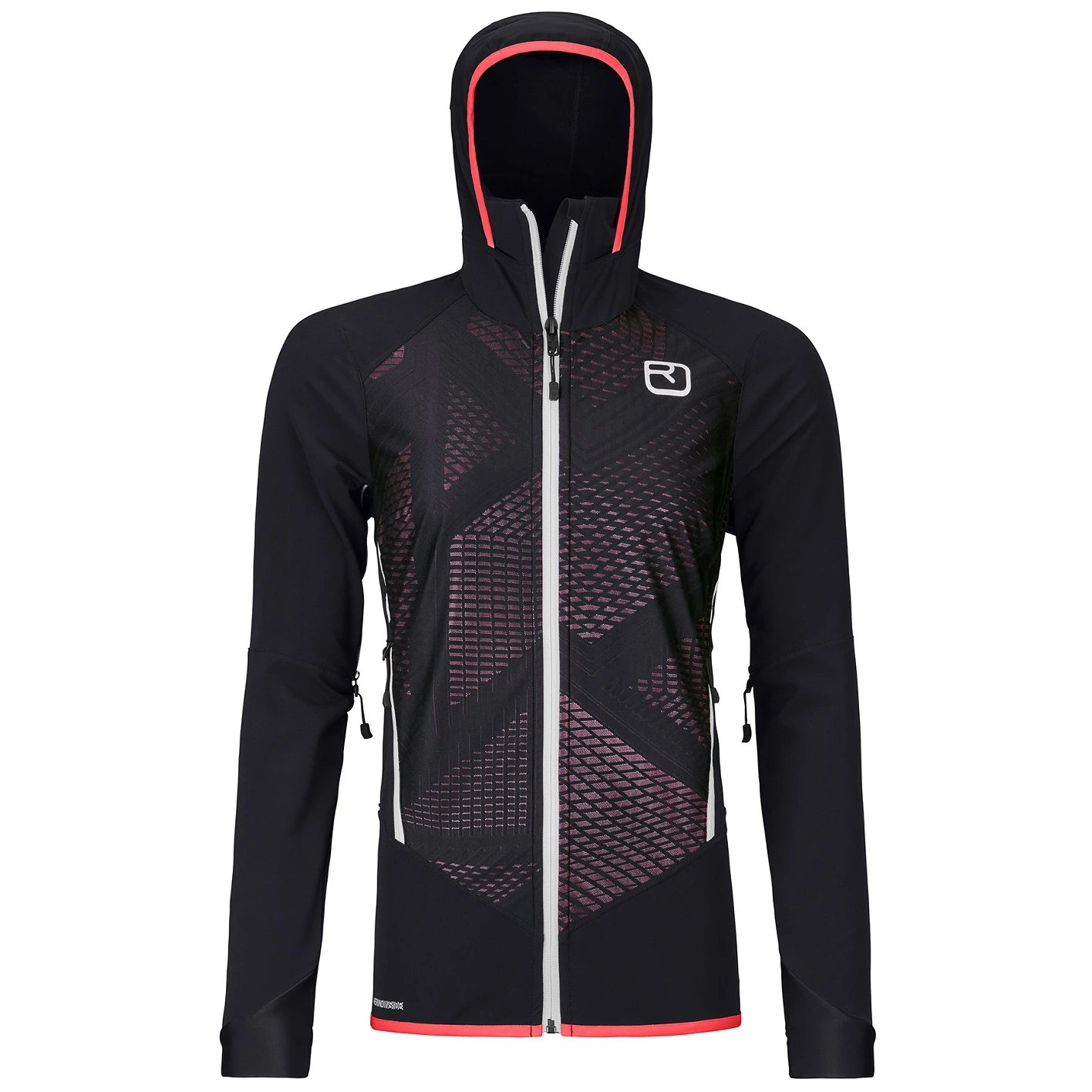 Die Col Becchei Jacket W Damen Softshelljacke von Ortovox mit Wolle auf der Innenseite und winddichter Membran im Brustbereich ist ideal zum Skibergsteigen und Skitourengehen. Die Außenseite der Jacke besteht aus dem sehr strapazierfähigen und dehnbaren Softshell-Material MERINO NATURTEC LIGHT der Schweizer Firma Schoeller®. Es ist hoch atmungsaktiv, trocknet schnell und weist eine hohe mechanische Belastbarkeit auf. Auf der Brust mit einer speziellen winddichten Shoeller® C_CHANGE-Membran.