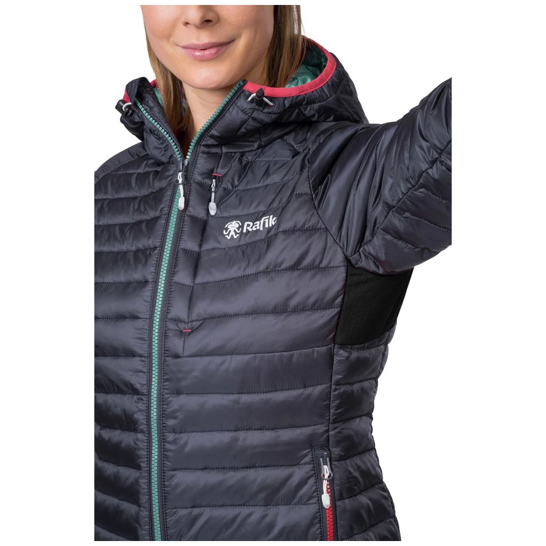 Die isolierte Damenjacke Darcy Rafiki wird von allen Kletterern dank ihrer zahlreichen Funktionen geschätzt. Als Isoliermaterial kommt Sorona von DuPont zum Einsatz, das nicht nur über hervorragende Wärmeeigenschaftenverfügt, sondern auch umweltfreundlichist. Kletterer werden den Zwei-Wege-Reißverschluss, die elastischen Zwickel im Achselbereich und die Netztaschen, in die sogar Kletterschuhe passen, sicherlich zu schätzen wissen.