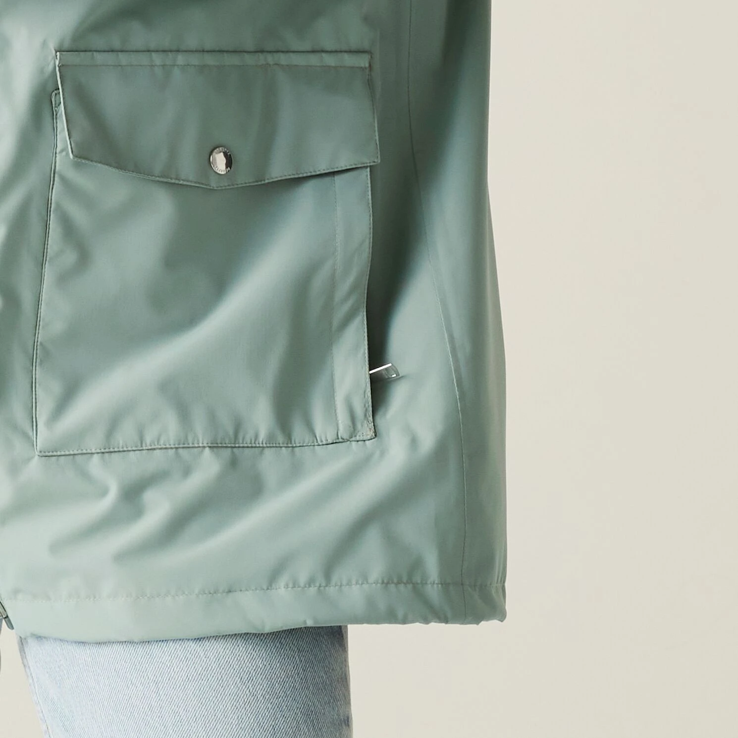 Das Futter aus glattem und bedrucktem Taft verleiht der Jacke einen Hauch von Eleganz, während die Kordelzüge in der Taille und an der Kapuze für eine schmeichelhafte Passform sorgen. Der hintere Belüftungsschlitz mit funktionalem Kordelzug sorgt für Stil und Atmungsaktivität.