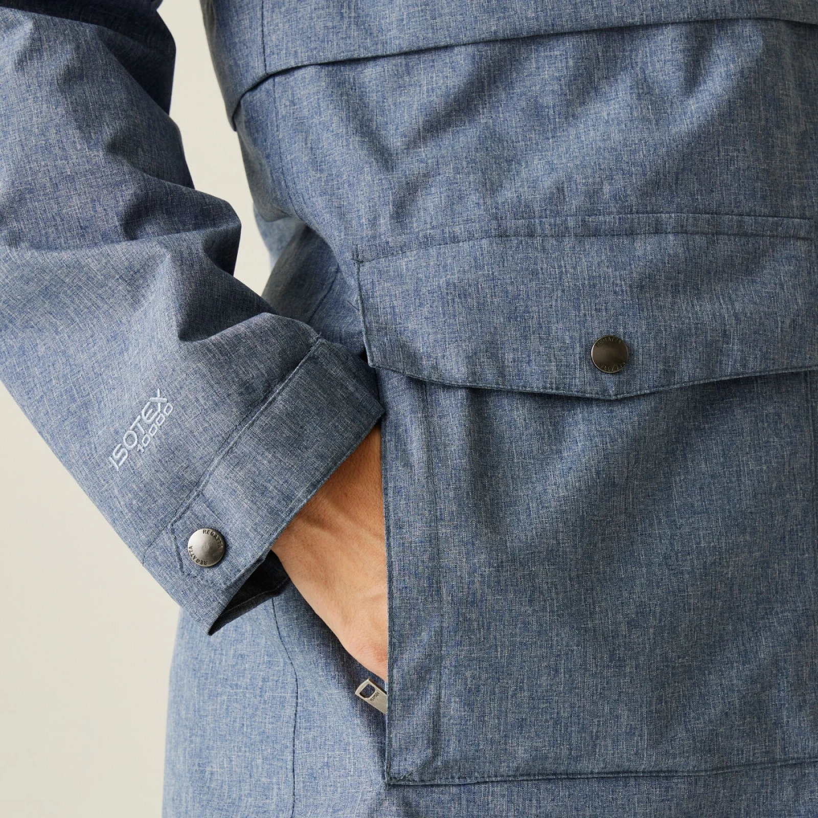 Die Jacke ist aus wasserdichtem und atmungsaktivem Polyestergewebe Isotex 10000 mit versiegelten Nähten und einer strapazierfähigen, wasserabweisenden Ausrüstung gefertigt. Dank dessen schützt sie dich zuverlässig vor Regen und Wind und du bleibst gleichzeitig komfortabel.