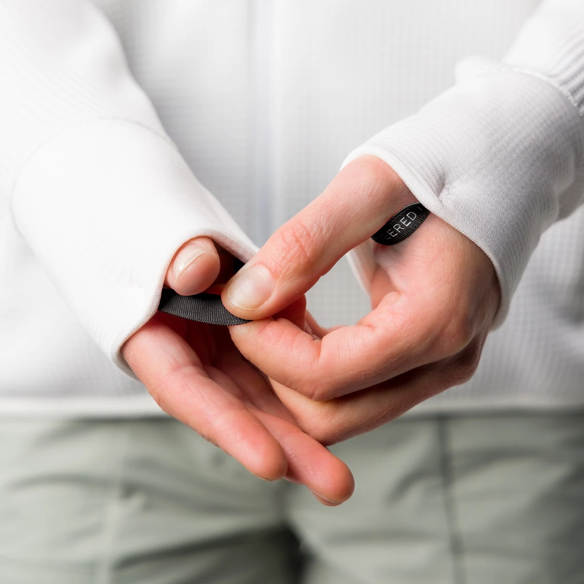 - Ärmelbündchen mit integrierten Daumenschlaufen