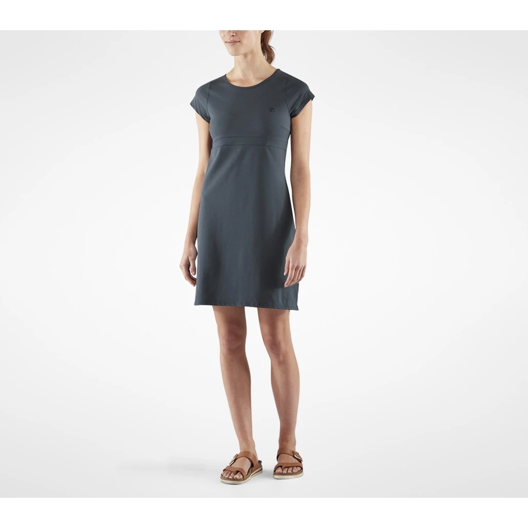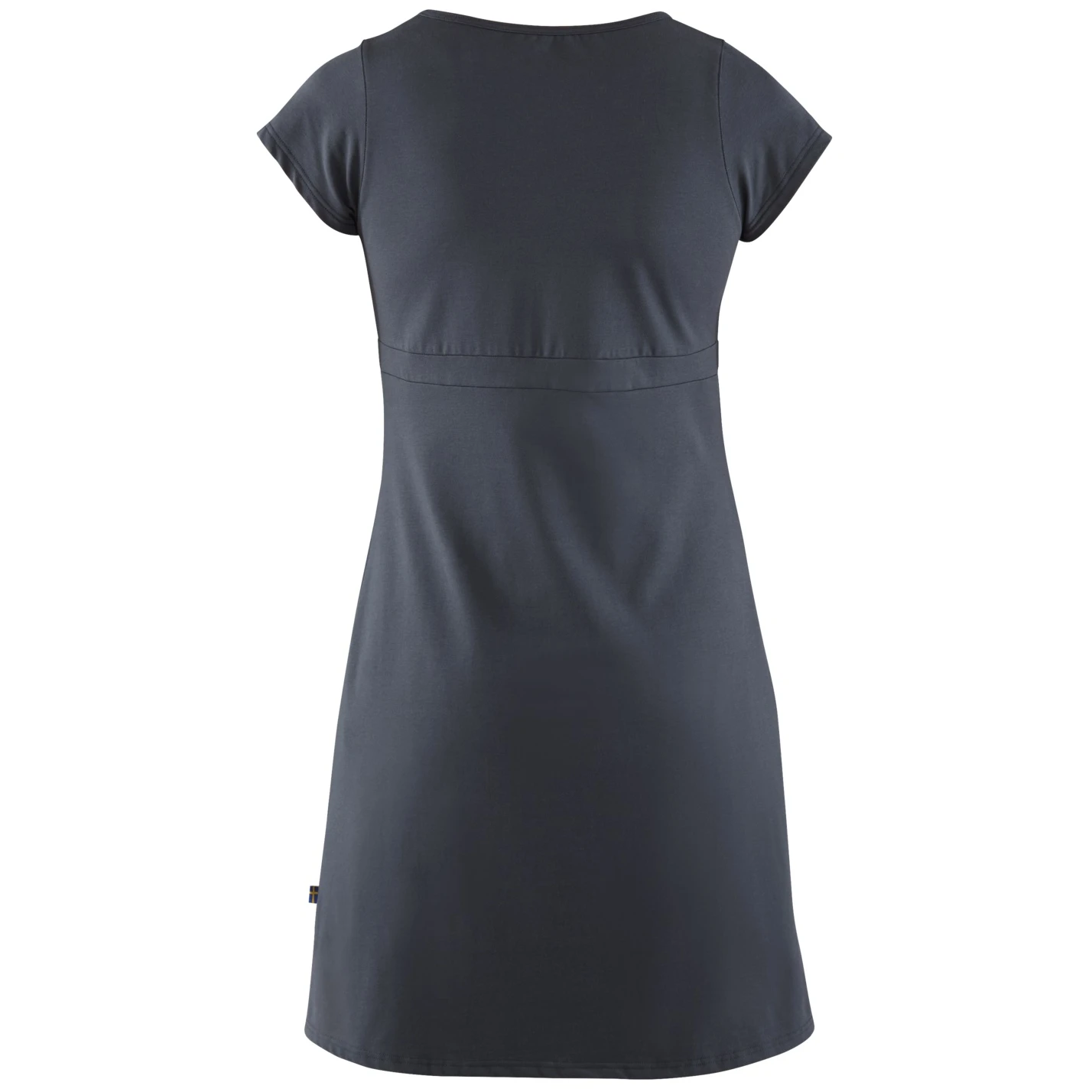 Leichtes und bequemes Damenkleid High Coast Dress W der Marke Fjällräven für leichtes Trekking in warmen Klimazonen. Hergestellt aus weichem und dehnbarem Baumwoll-Elasthan-Jersey , der sich angenehm glatt auf der Haut anfühlt.