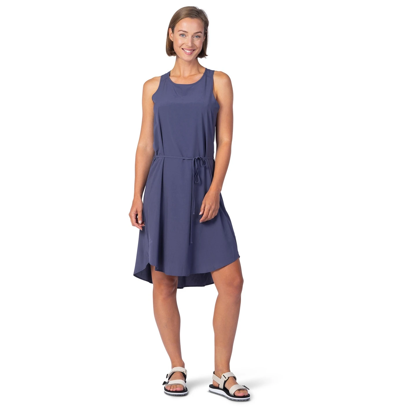 Das Kleid hat eine raffinierte Rückenpartie, einen runden Ausschnitt und einen Tunnelzug in der Taille, was ihm Weiblichkeit verleiht und eine Anpassung an die Figur ermöglicht. Das leichte und flexible AFT Stretch-Material sorgt für maximalen Komfort und Bewegungsfreiheit, sodass Sie sich sowohl in der Stadt als auch bei einem Ausflug in die Natur wohlfühlen.