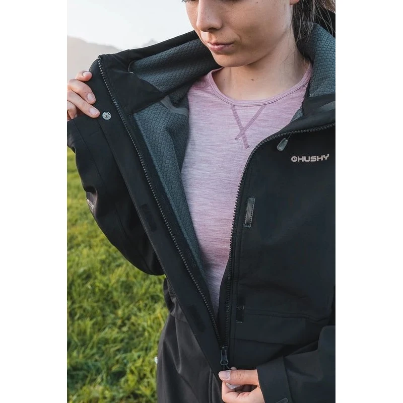 Der universelle Damen-Softshellmantel Husky Sephie L mit Kapuze ohne Wattierung ist maßgeschneidert für alle, die aktive Outdoor-Aktivitäten auch bei schlechtem Wetter lieben. Dieses bequeme Stück ist mit praktischen Reißverschlusstaschen ausgestattet, in denen Sie alle wichtigen Gegenstände verstecken können.