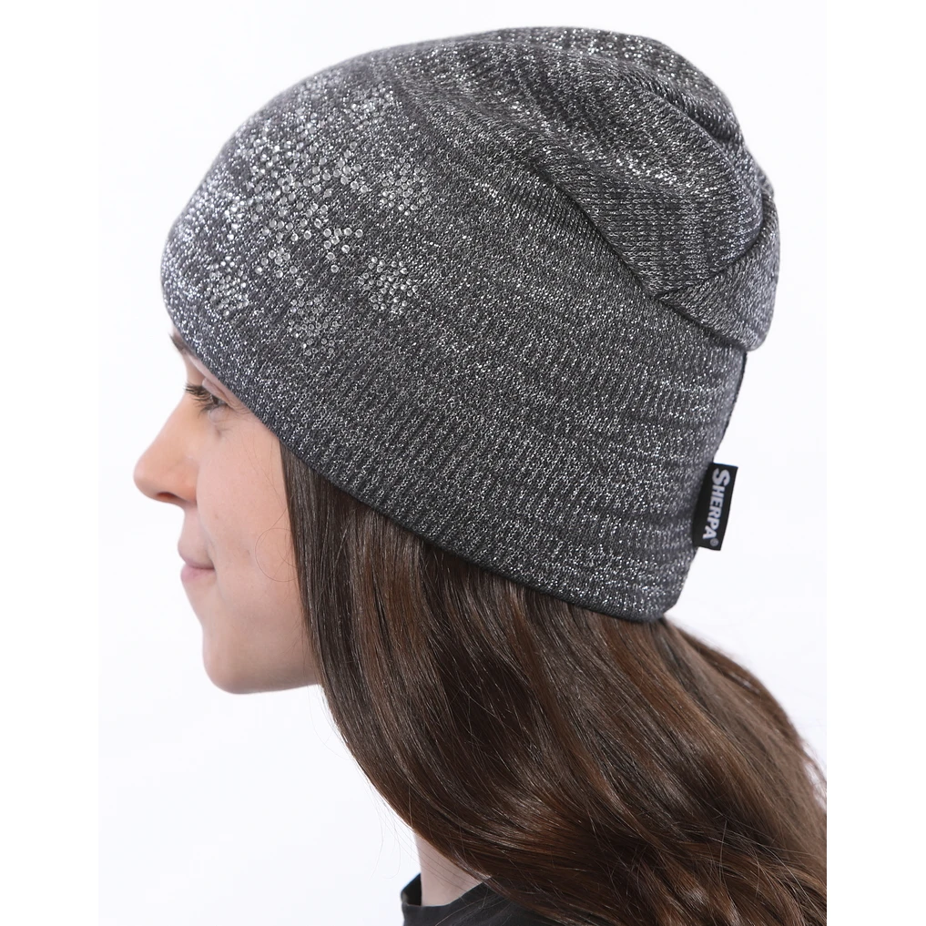 Die Damen Strickmütze Enya der Marke Sherpa eignet sich für die meisten Wintersportaktivitäten und Aktivitäten in einem Bergresort sowie für den Alltag. Für den Effekt ist es mit Lurex und einer Verzierung aus Deko-Steinen ausgestattet. Die Innenseite ist im Stirnbereich mit einem angenehm weichen Microfleece-Einsatz ausgestattet, der für ein bequemes Tragegefühl sorgt.