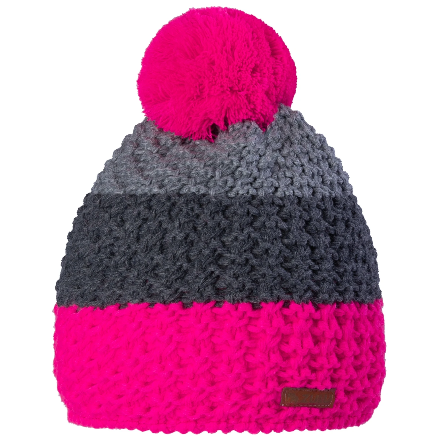 Damen Strickmütze mit Pompom Zulu Iwy im farbenfrohen Design ist auf der Innenseite mit einem angenehm weichen Fleece-Einsatz ausgestattet, der auch bei strengem Frost schön warm hält.