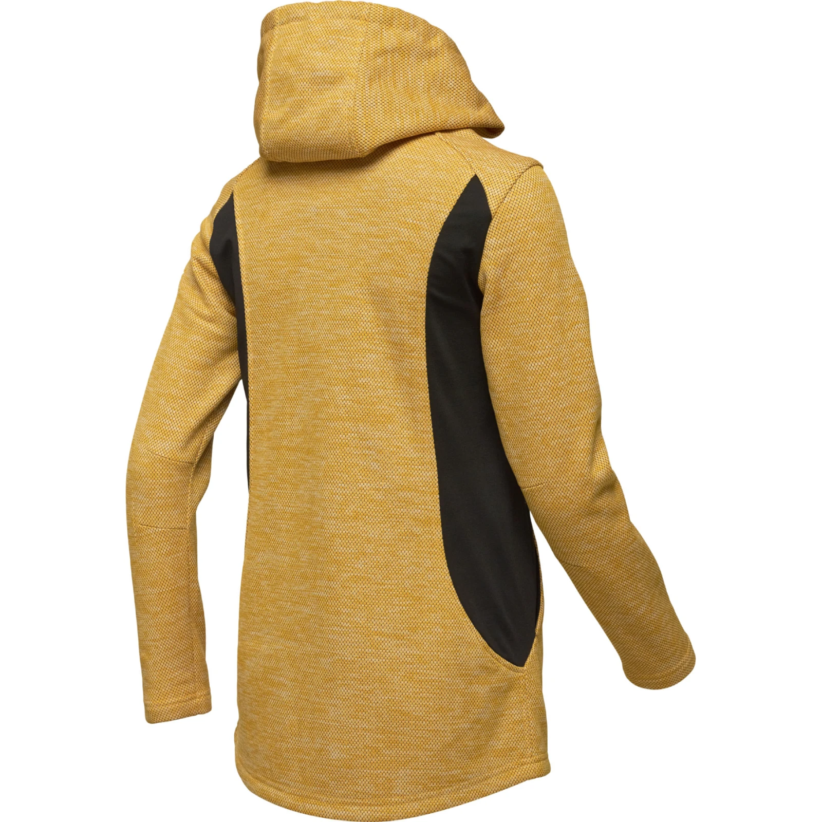Ergonomischer Schnitt mit Raglan-Ärmeln und elastischen Seiteneinsätzen garantiert uneingeschränkte Bewegungsfreiheit. Derdurchgehende Zwei-Wege-Spiralreißverschluss erleichtert das Anziehen und die verstellbare Kapuze bietet zusätzlichen Schutz vor Wind. Der untere Saum und die Ärmel sind ungefüttert, was dem Pullover einen lässigen Look und hohen Tragekomfort verleiht. Zwei praktische Reißverschlusstaschen bieten Stauraum für Ihre Kleinigkeiten.