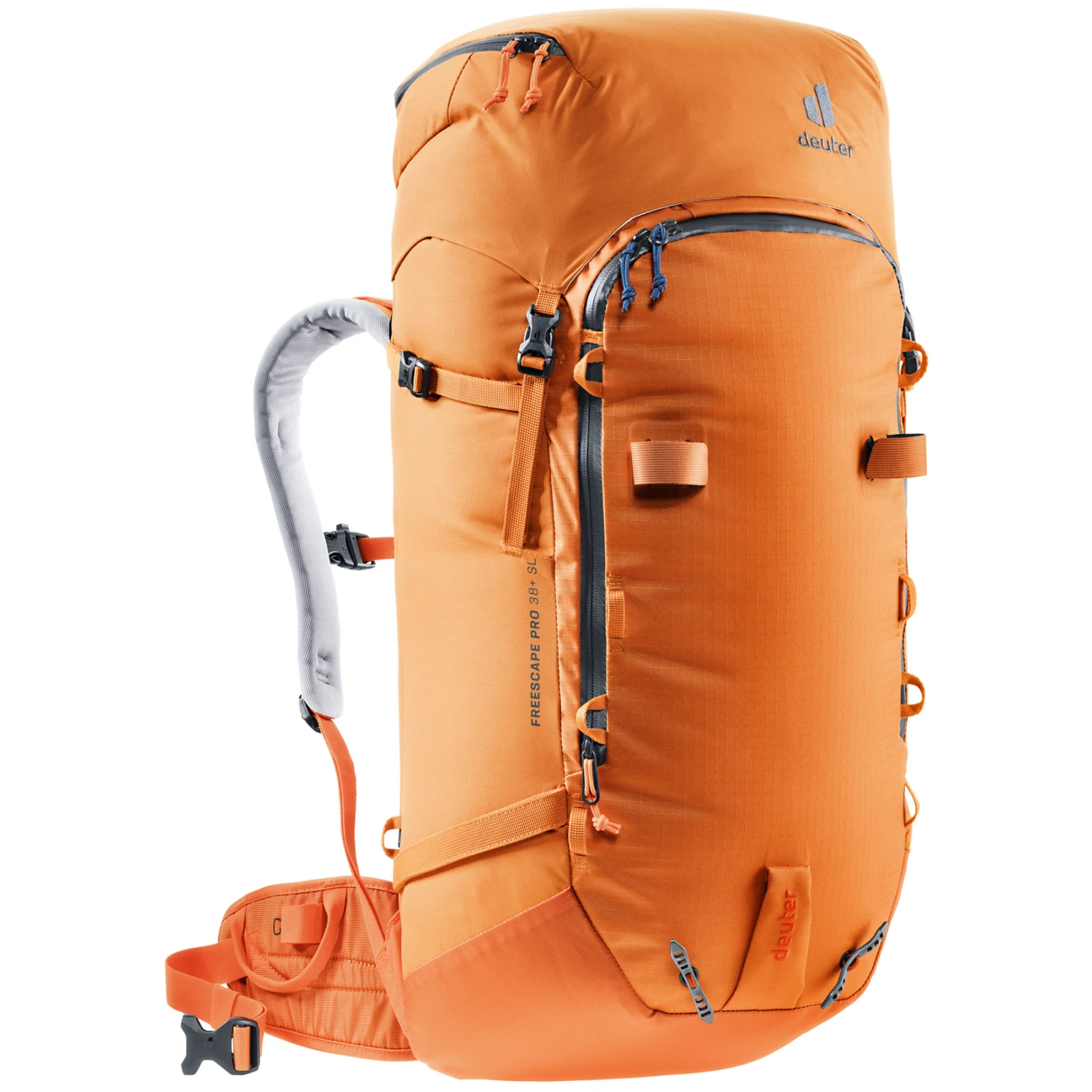 Damen-Rucksack Freescape Pro 38+ SL der Marke Deuter ist ein vielseitiger Helfer für ambitionierte Skibergsteiger. Allerdings ist der Rucksack auch für Mehrtageswanderungen geeignet.