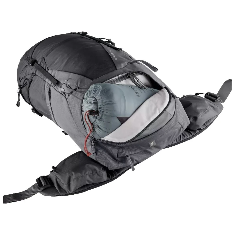 Der Rucksack verfügt über ein rundes Rahmenprofil, das eine optimale Lastverteilung ermöglicht, wozu auch die gepolsterten Tragegurte beitragen. Für einen sicheren und festen Sitz des Rucksacks sorgen ein verstellbarer Brustgurt und Kompressionsriemen. Der Rucksack bietet viel Stauraum dank 3 Außentaschen, einem inneren Wertsachenfach, einer Tasche für eine 3-Liter-Trinkblase, einem Bodenfach und einem elastischen Innenfach. Durch die übersichtliche Fächeraufteilung lässt sich das Verstauen von Utensilien einfach und übersichtlich im Deckelfach oder im geräumigen Hauptfach erledigen.