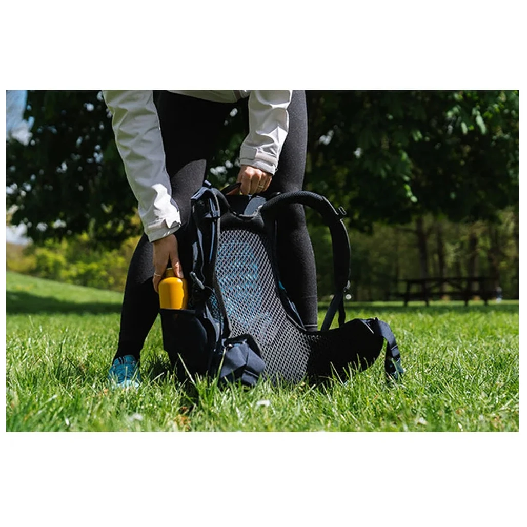 Der Rucksack verfügt über eine große Frontplatte mit Schnellzugriff, seitliche Stretchtaschen für Wasserflaschen und eine Innentasche für ein Trinksystem , sodass Sie Ihre Sachen einfach organisieren und darauf zugreifen können. Außerdem besteht es aus recyceltenMaterialien mit einer PFAS-freien, wasserabweisenden Beschichtung und ist damit eine umweltfreundliche Wahl für jeden Wanderer.