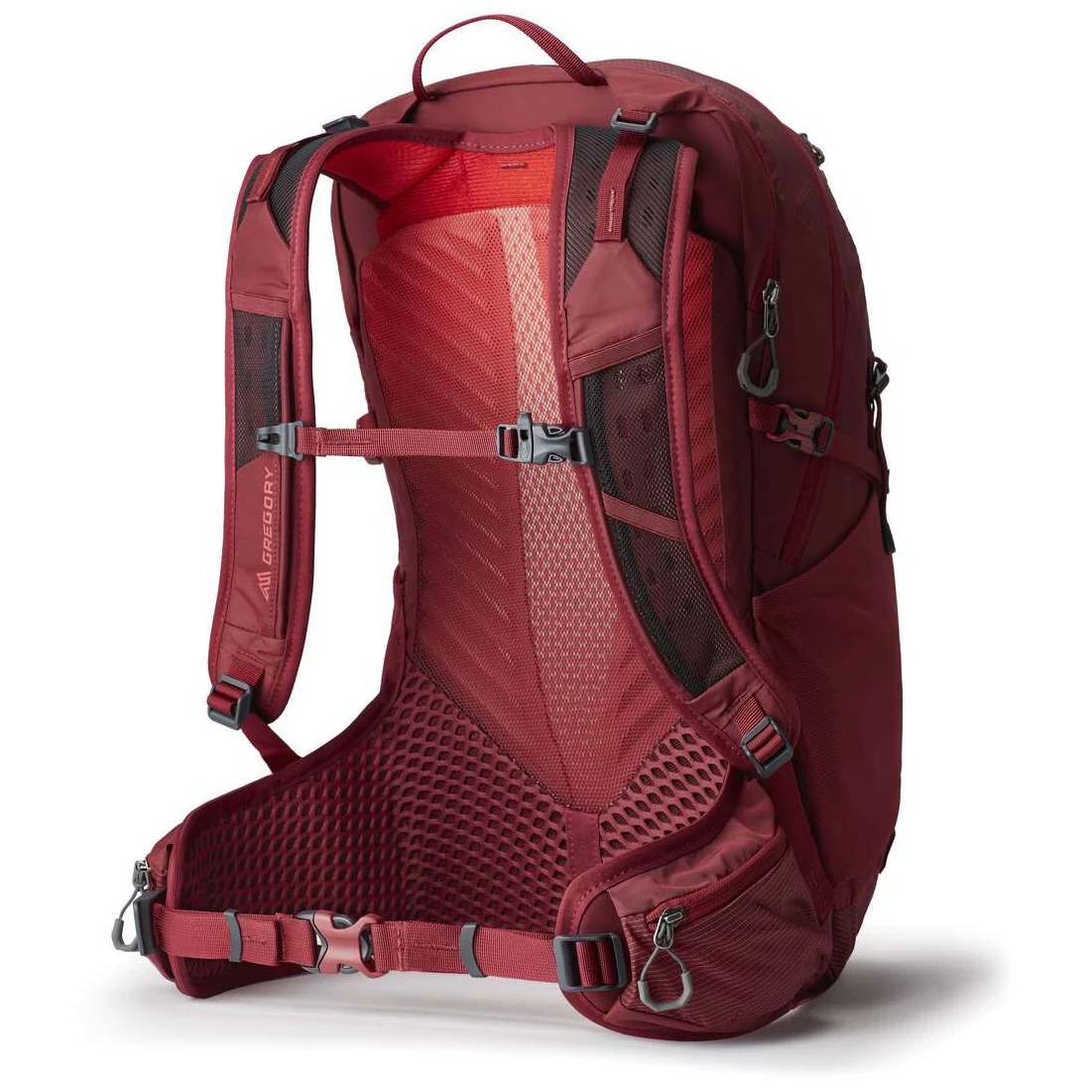 Der Damen-Rucksack Maya 25 der amerikanischen Marke Gregory zeichnet sich durch sein BioSync-Rückensystemaus, das leichte Bewegungen ermöglicht und auch bei schnellen Bewegungen die Stabilität des Rucksacks gewährleistet. Das Rückensystem verfügt außerdem über ein atmungsaktives 3D-Panel, das den Rückenkontakt mit der Rückseite des Rucksacks verringert und die Luftzirkulation fördert. Auch bei Überleistung. Die Stabilität des Rucksacks wird ausreichend unterstützt durch den Hüftgurt – eng, stützend und dennoch atmungsaktiv, ergänzt durch zwei Reißverschlusstaschen. Die Rückenlänge des Rucksacks ist verstellbar und die atmungsaktiven 3D-Schultergurte mit Sicherheits- Brillenschlaufe ergänzen die Gesamtfunktion des Rückensystems. Der Rucksack sitzt auf Ihrem Rücken und Sie können sich nur um die bevorstehende Reise kümmern. Bei Schwierigkeiten kannst du die Sicherheits- Pfeife direkt an der Schnalle des Brustgurts verwenden.