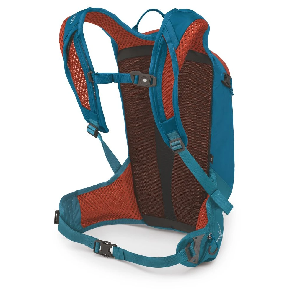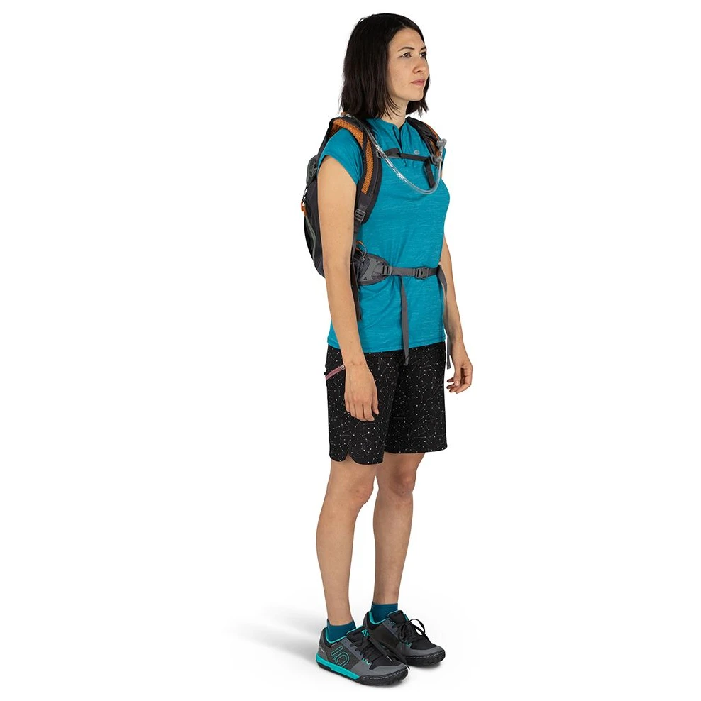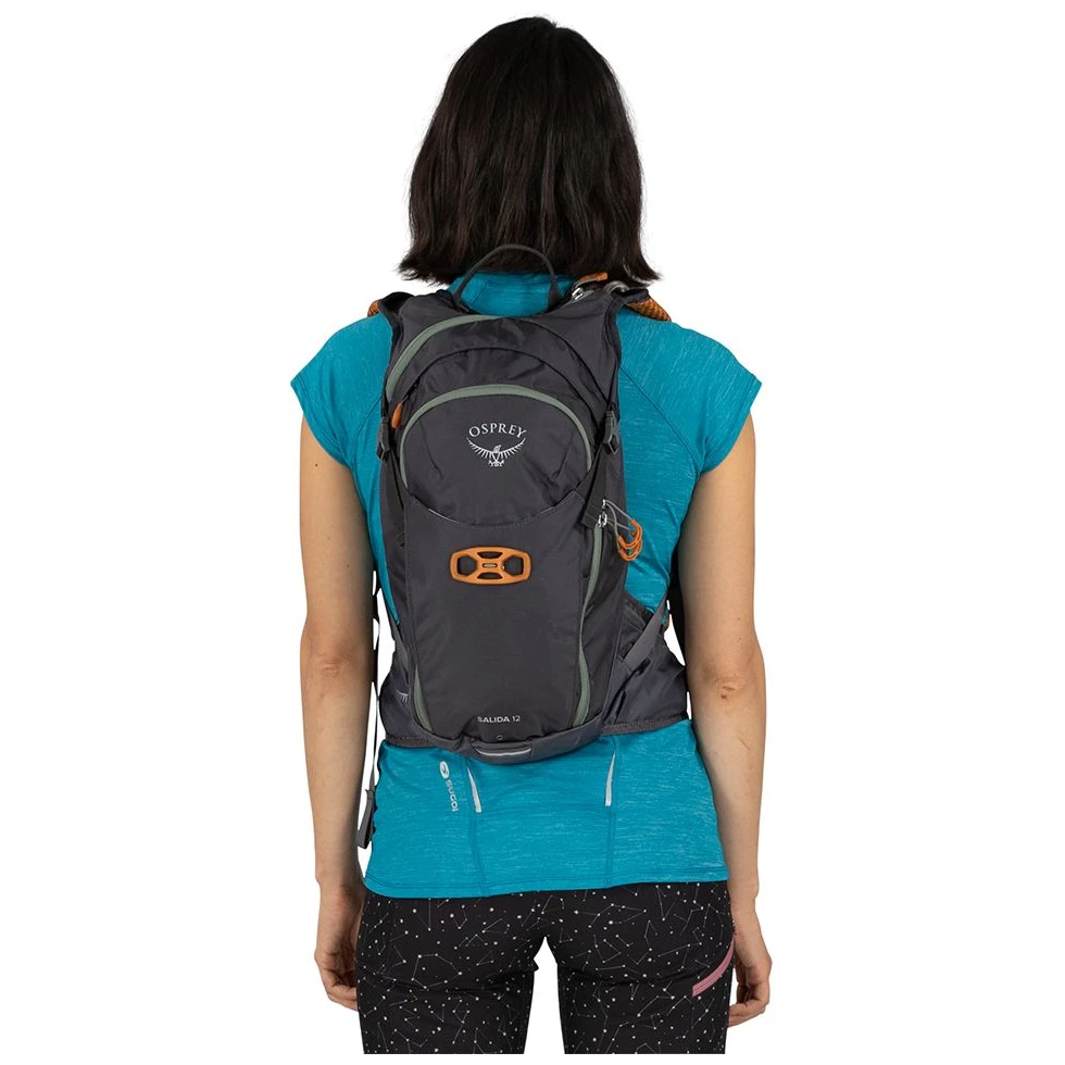 Der Salida 12 Damen-Fahrradrucksack von Osprey ist ideal für abenteuerliche Tage auf deinem Mountainbike. Der Rucksack ist so konzipiert, dass er körperindividuell angepasst werden kann und so für jeden Körpertyp maximalen Komfort und Stabilität bietet. Es besteht aus strapazierfähigem und recyceltem Nylon mit einer DWR wasserabweisenden Oberflächenbehandlung und ist außerdem für nachhaltiges Design bluesign®-zertifiziert. Der Zugriff auf den Rucksack erfolgt über einen U-förmigen Reißverschluss. Für Stabilität sorgen ein Rollgurt mit weichen Kanten und ein Hüftgurt mit Air-Mesh-Umwicklung.