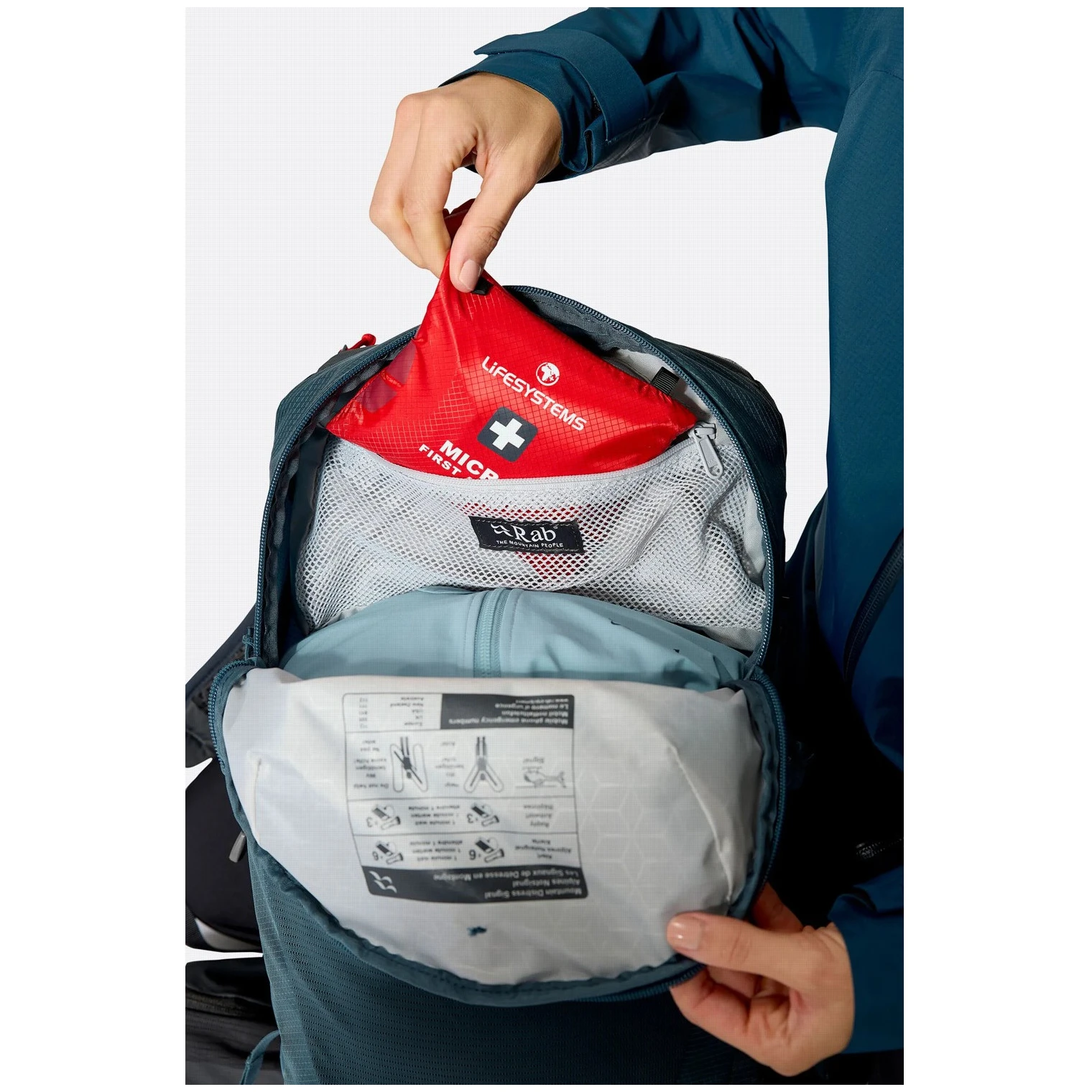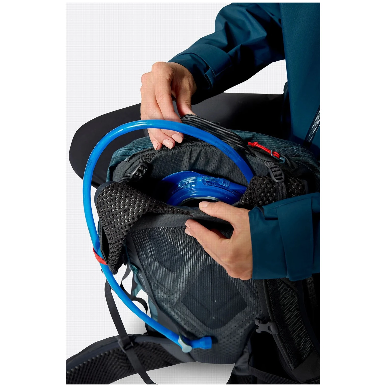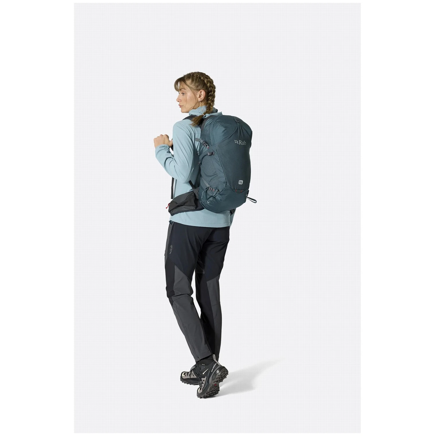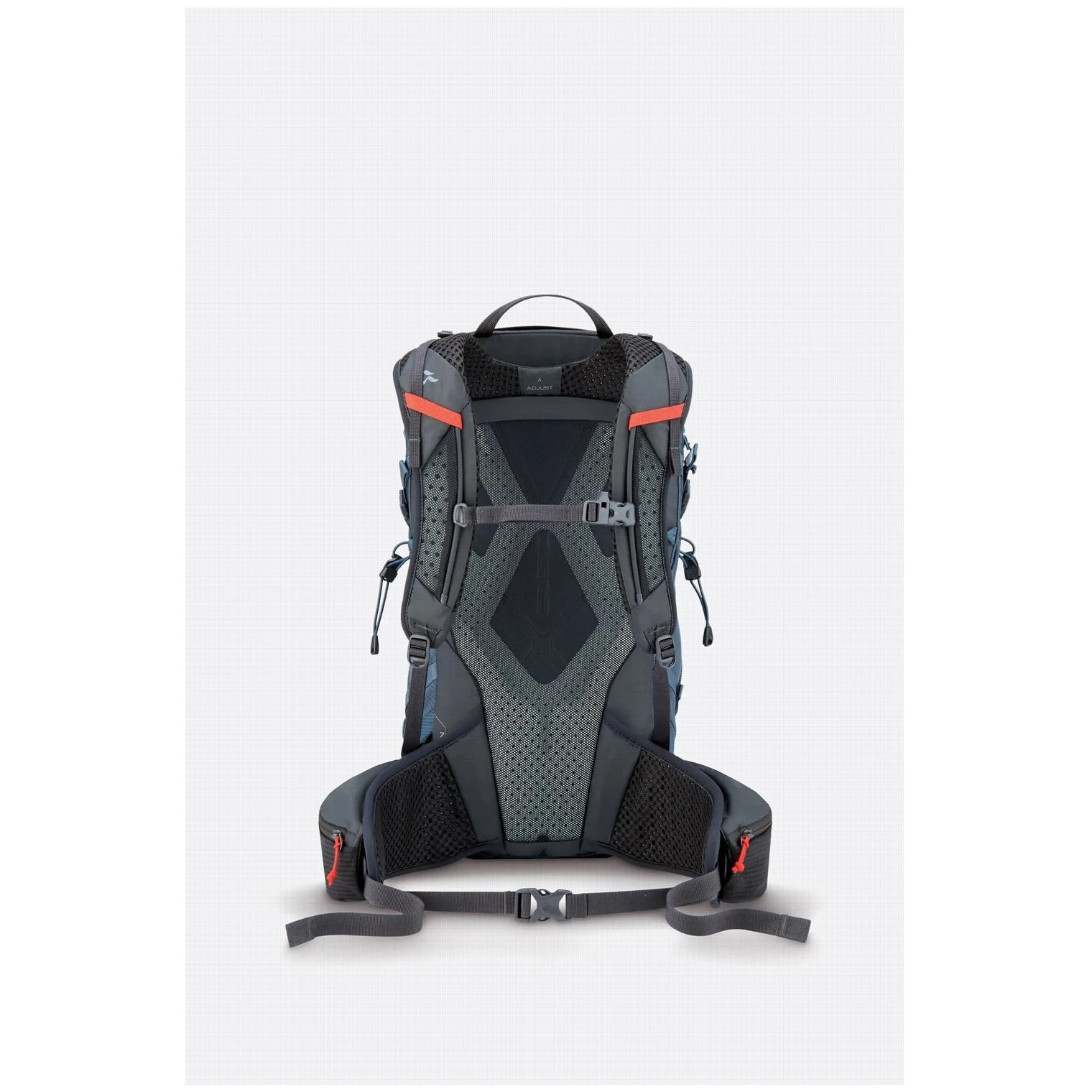 Der Damen-Rucksack Protium 18 ND der Marke Rab ist für ganztägige All-Mountain-Wanderungen in jedem Gelände konzipiert. Für maximalen Tragekomfort sorgt das elastische und flexible Rückensystem Air Contour™, das selbst bei intensiven Anstiegen für eine optimale Luftzirkulation sorgt. Die atmungsaktiven und verstellbaren Schultergurte und der Hüftgurt tragen zusätzlich zum hohen Tragekomfort bei.