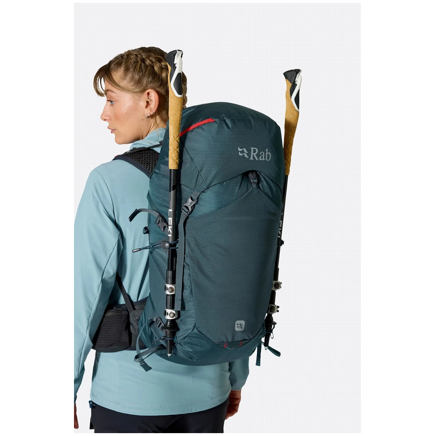 Der Damen-Rucksack Protium 33 ND der Marke Rab ist für ganztägige All-Mountain-Wanderungen in jedem Gelände konzipiert. Für maximalen Tragekomfort sorgt das elastische und flexible Rückensystem Air Contour™, das selbst bei intensiven Anstiegen für eine optimale Luftzirkulation sorgt. Die atmungsaktiven und verstellbaren Schultergurte und der Hüftgurt tragen zusätzlich zum hohen Tragekomfort bei.