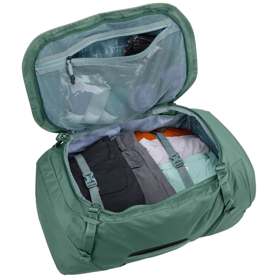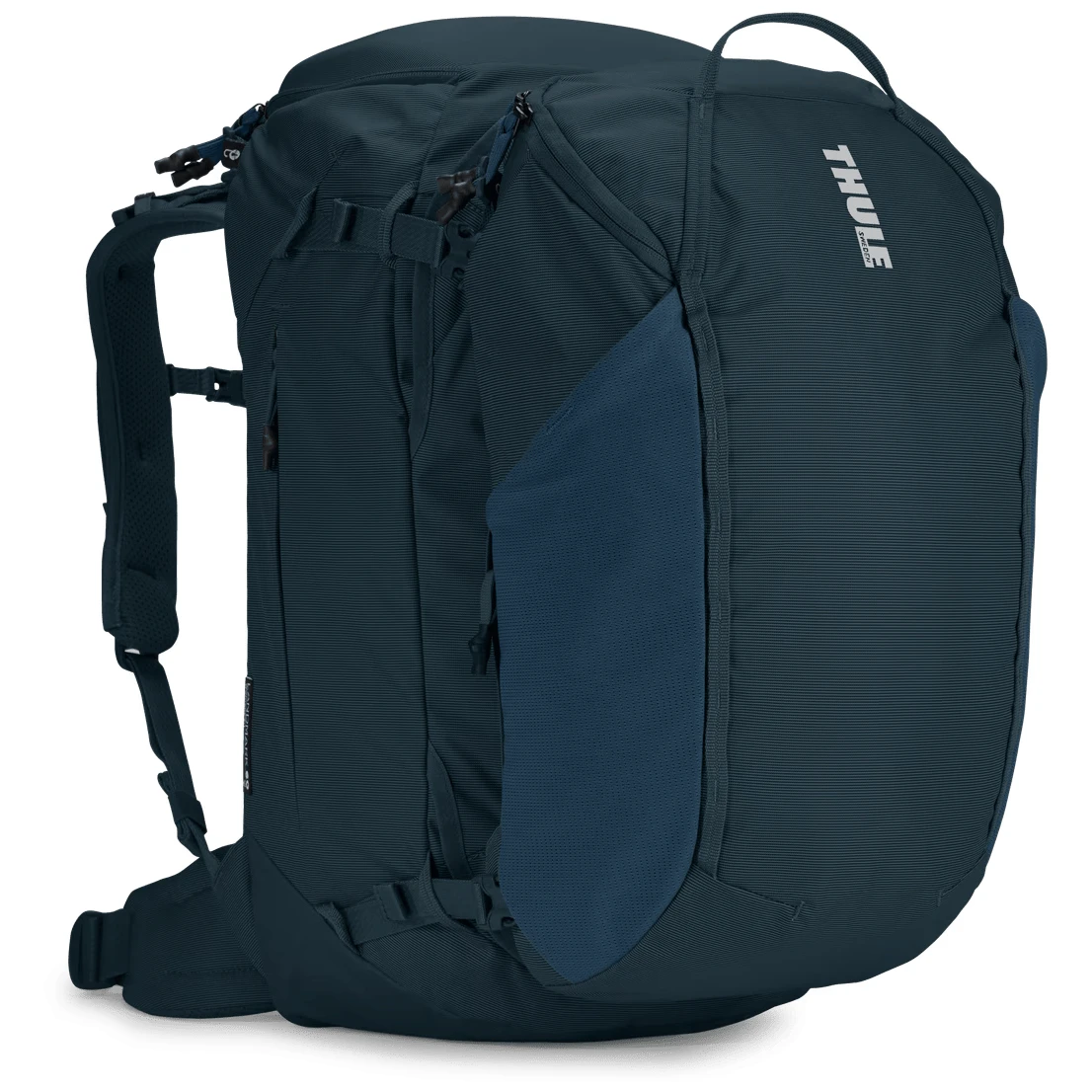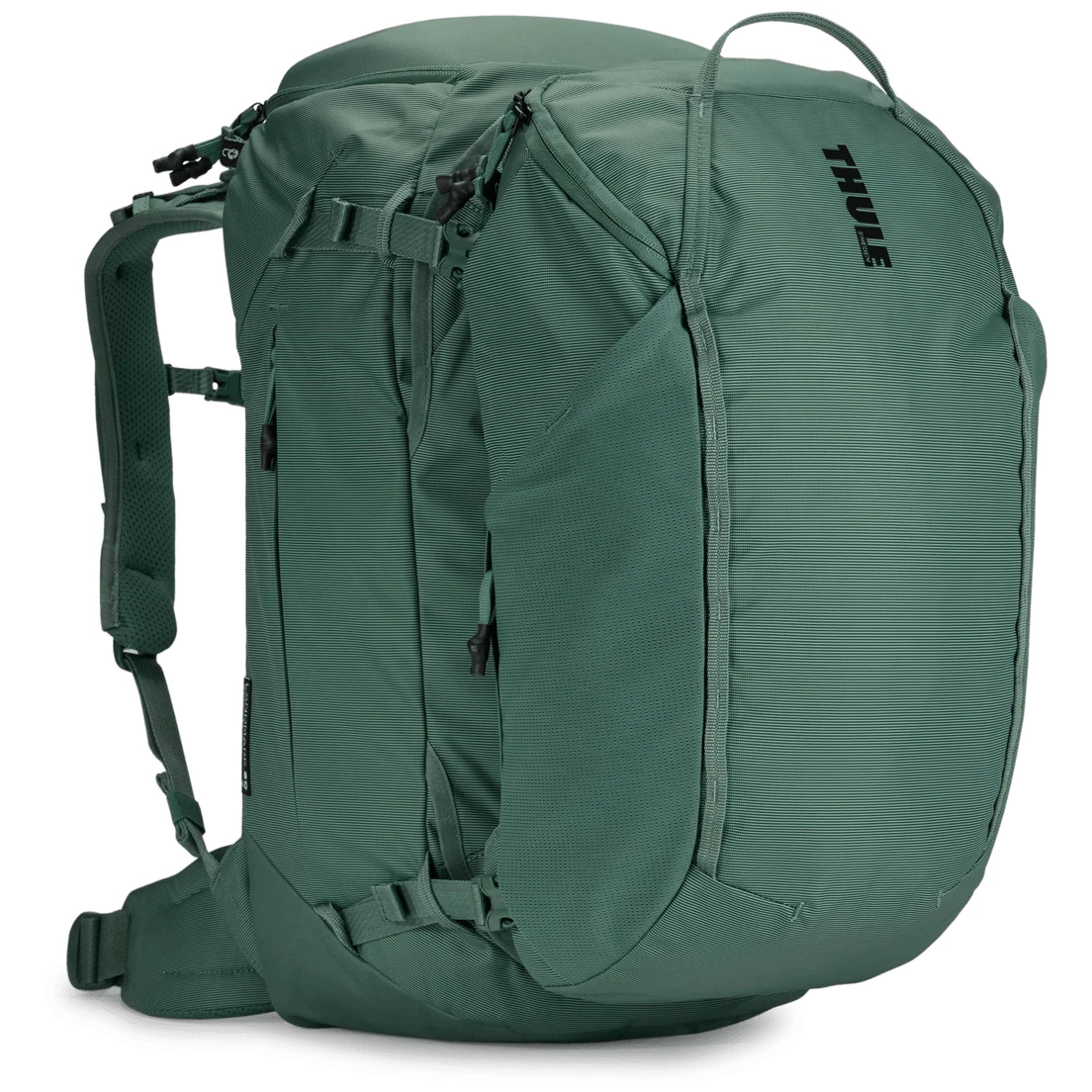 Thule Landmark 60L Women's ist ein Damen- Wanderrucksack mit einem Gesamtvolumen von 60 l und vielen interessanten Funktionen. Dabei handelt es sich um eine Kombination aus einem größeren Rucksack mit 40 l Fassungsvermögen, der als Handgepäck (ohne weiteren Rucksack) konzipiert ist, und einem zusätzlichen kleineren Rucksack mit 20 l Fassungsvermögen. Der kleinere Rucksack wird von hinten befestigt, kann aber zur besseren Balance auch von vorne an den Schultergurten befestigt werden.