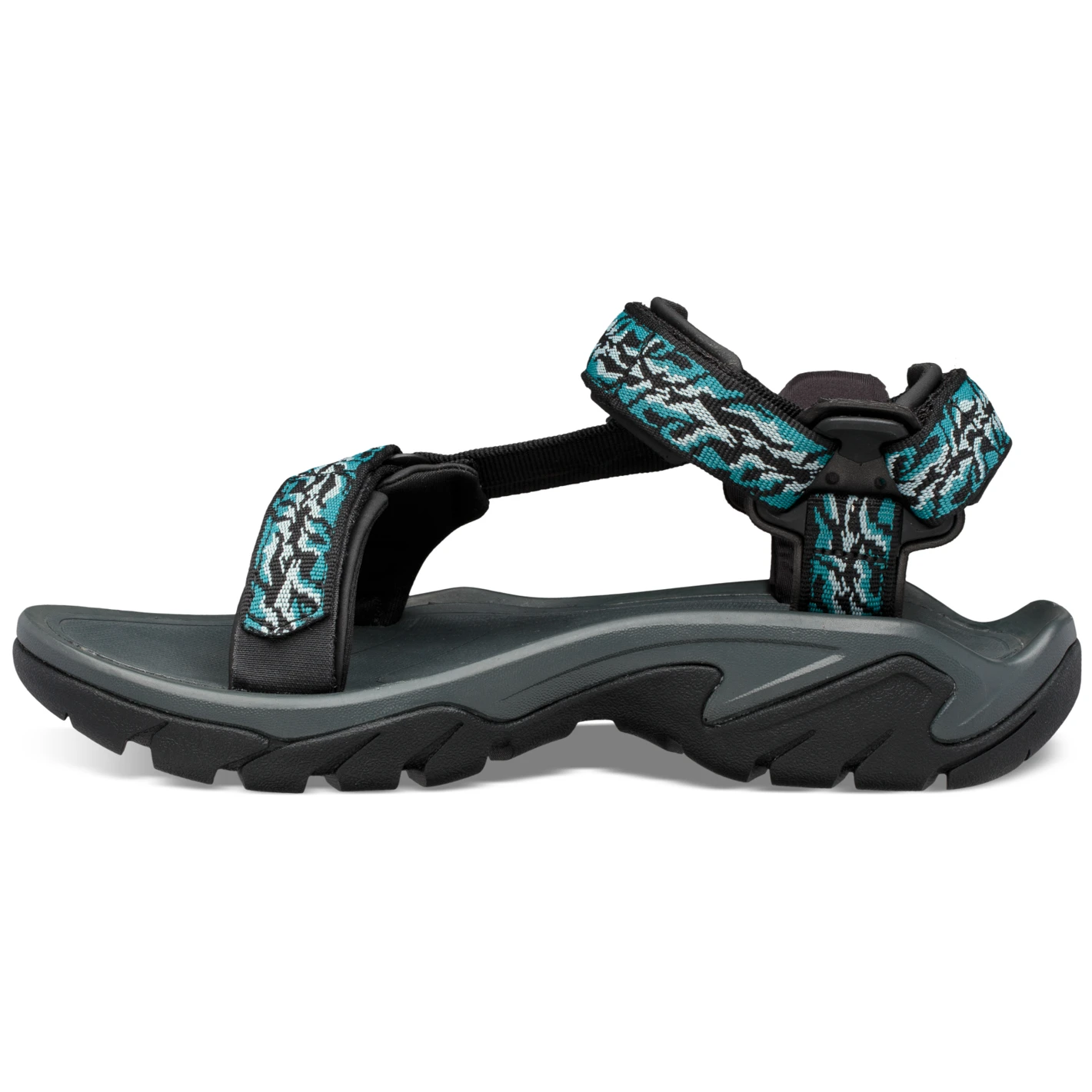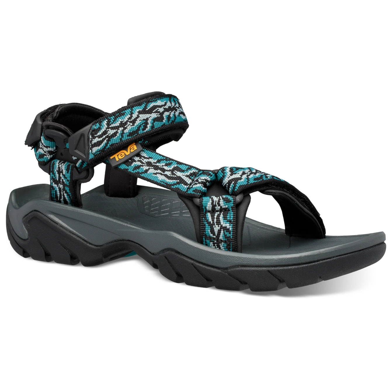 Damensandalen Teva Terra Fi 5 Universal sind bequeme und leichte Schuhe, die zum Gehen im Wasser geeignet sind. Die offene Zehenpartie verhindert Wassereinlagerungen. Durch die stufenlos verstellbaren, gepolsterten Klettverschlüsse sitzt der Schuh optimal am Fuß und die Polsterung der Schnallen beugt Blasen und Druckstellen vor. Darüber hinaus minimiert die antimikrobielle Zinkbehandlung von Microban® die Geruchsbildung auch bei langfristiger Verwendung. Die höhere Gummilaufsohle mit Spider Original Außensohle sorgt für guten Grip bei Nässe und maximalen Kontakt mit dem Untergrund. Sie können die Schuhe für Spaziergänge in der Stadt oder für längere Wanderungen verwenden.