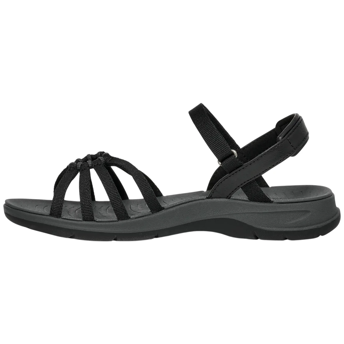 Die Sandalen haben ein weiches Mikrofaserfutter, das für Komfort beim Auftreten sorgt. Der elastische Vorderteil, der speziell für den Damenfuß entwickelt wurde, erzeugt einen eleganten Perleneffekt. Zusammen mit dem verstellbaren Ristriemen und dem Nylonriemen im hinteren Teil wird das Fußgewölbe optimal fixiert. Dank der gummierten Sohle bieten die Sandalen hervorragenden Halt, sodass sie Sie in keinem Gelände enttäuschen.