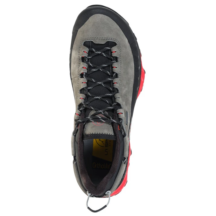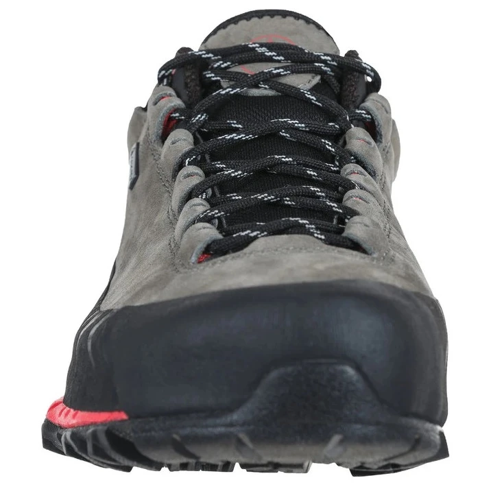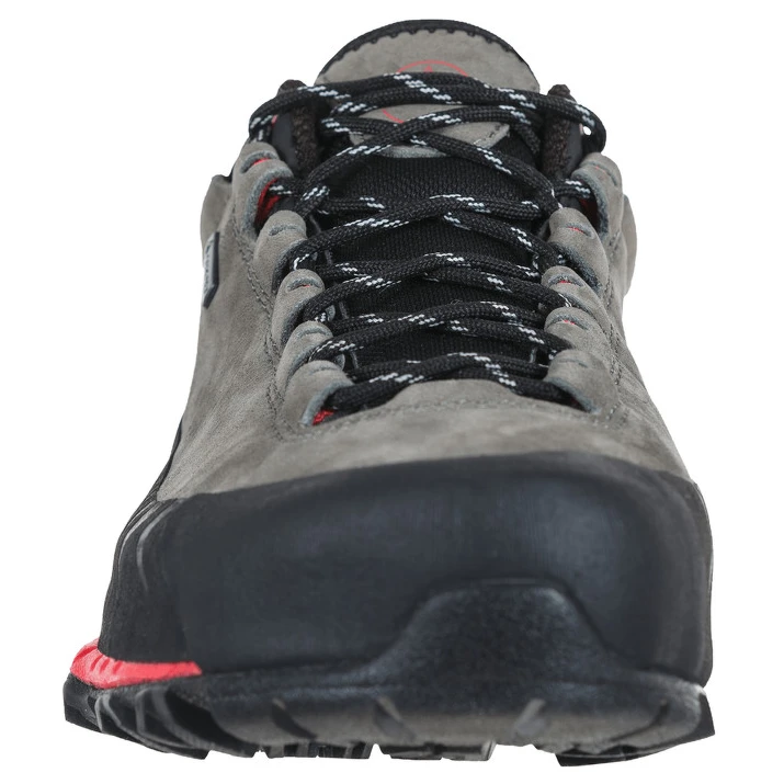 Technischer Wanderschuh Tx5 Low Woman Gtx vom Hersteller La Sportiva, mit dem Du keine Angst haben musst, abseits ausgetretener Pfade auf andere zu treffen. Er kann sowohl beim klassischen Wandern als auch beim Zugang in Klettergelände oder auf Klettersteigen eingesetzt werden. Das Obermaterial aus hochwertigem Nubukleder in Kombination mit einem durchgehenden Futter verleiht dem Schuh eine erhöhte Abrieb- und Wasserfestigkeit. Das Innenfutter mit der GORE-TEX®-Membransorgt dafür, dass kein Tropfen ins Innere gelangt. Die strapazierfähige Vibram -Laufsohle mit grobem Muster (Mega Grip) bietet hervorragenden Halt und Sicherheit bei jedem Schritt.
